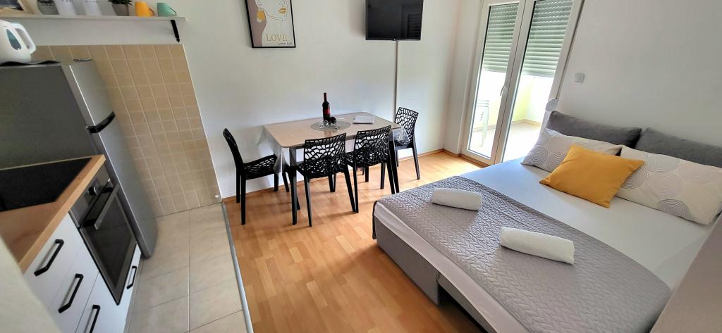 Maximale tevredenheid, het appartement is groot en schoon, je vindt er alles wat je nodig hebt. Het strand en het centrum zijn binnen enkele minuten bereikbaar. Parkeren op het erf beschermd tegen de zon. Marko en zijn familie zijn erg aardig en behulpzaam bij alles wat je nodig hebt. Ik raad het zeker aan Bedankt voor een mooie en aangename plek, gemaakt voor een rustige en ongestoorde vakantie.