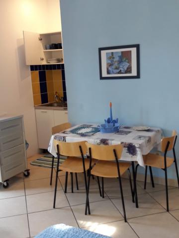 De accommodatie ligt in een rustige omgeving in het stadscentrum, op 4 tot 5 minuten loopafstand van het strand en alle benodigde locaties voor een zorgeloze vakantie. In de buurt vindt u winkels, een kliniek, een apotheek, een markt, cafés en alles wat u verder nodig heeft voor een ontspannende vakantie zonder dat u zelf de auto hoeft te besturen. Kinderen hebben toegang tot een omheinde, schaduwrijke tuin en een zandbak. Voor de appartementgebruikers is er parkeergelegenheid naast het huis, deze is bij de prijs inbegrepen. Er is ook een barbecueplek in de tuin.