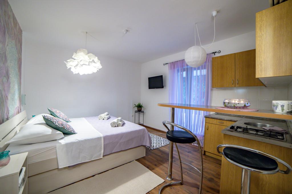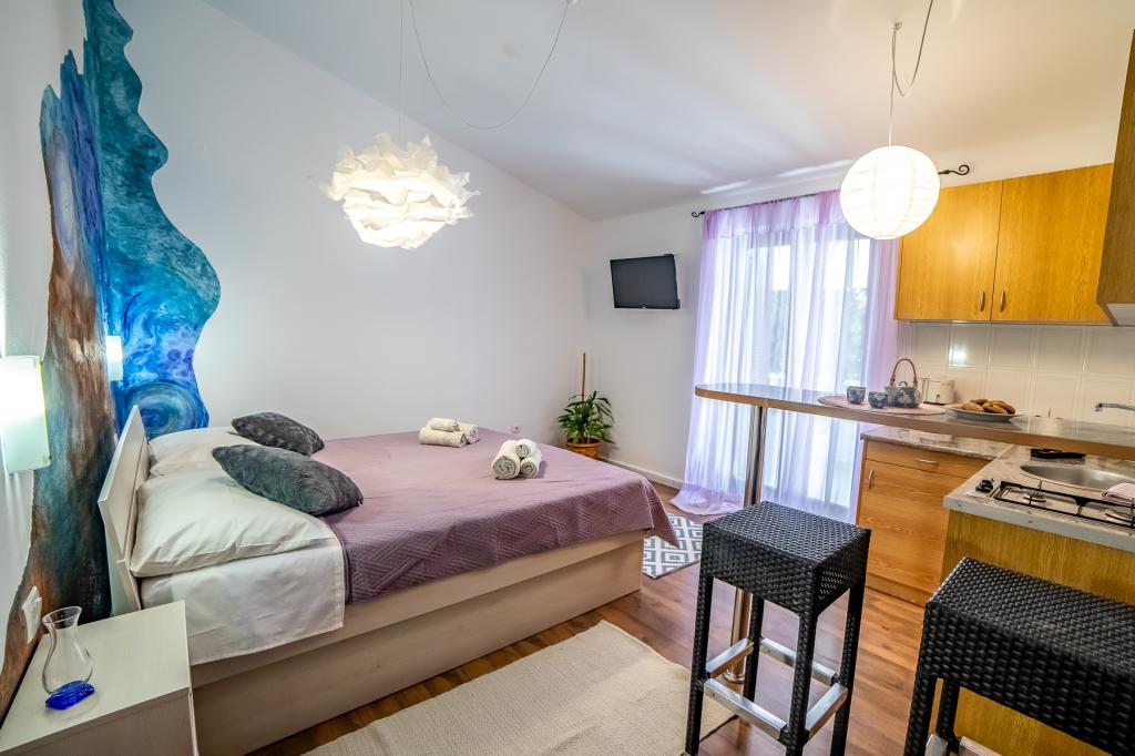 Appartementen Horizont liggen aan het strand in Ražnje, een traditioneel vissersdorp, op slechts 30 km van Šibenik. De appartementen beschikken over een gemeubileerd terras met uitzicht op zee. Er is gratis WiFi beschikbaar in de gehele accommodatie. Alle appartementen zijn voorzien van airconditioning, kabeltelevisie, een keuken of kitchenette en een eethoek. Alle accommodaties hebben bovendien een eigen badkamer met een douche en een haardroger. Het restaurant biedt plaats aan 150 gasten en serveert lokale en internationale specialiteiten in een authentieke sfeer. Marina Frapa in Rogoznica ligt op 11 km afstand en het door UNESCO beschermde Paleis van Diocletianus in Split ligt op 54 km van de accommodatie. De luchthaven van Split ligt op 32 km van de accommodatie.