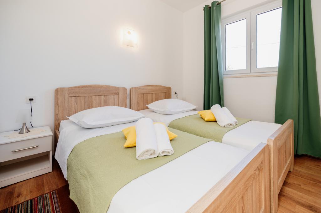 Appartementen IVIS zijn gelegen in een klein Dalmatische stad genoemd voor hem. Het is een rustige plek, ideaal voor een familie vakantie. Ražanj is gelegen in de buurt van Rogoznica en op 45 km van Split en Sibenik. De appartementen worden omgeven door pijnbomen. Natuurlijke stranden en de kristalheldere zee. De appartementen bevinden zich op 30 meter van de zee. Het centrum, met winkels en restaurants, bevindt zich op 200 meter van het huis. De appartementen bestaan uit twee kamers met twee bedden, een woonkamer met TV en satelliet-tv, een badkamer met wasmachine, groot terras (balkon) met uitzicht op zee, airconditioning en Wi-Fi. . Appartementen hebben een eigen parkeerplaats, die gasten kunnen gebruiken. In de buurt van het huis is er een strand dat is grotendeels geasfalteerd, en een beetje verder (ongeveer 300 meter) van een kiezelstrand.
