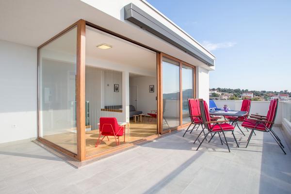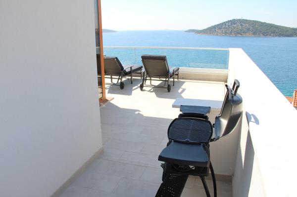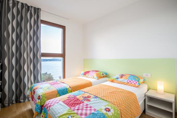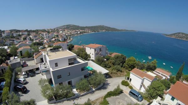 De nieuw ingerichte Jelena-appartementen liggen in de baai van Ljoljinica, naast Ražanj, op 7 km van Rogoznica en Marina Frapa en op 15 km van de nachtclub Aurora-Primošten. Een ideale plek voor een rustige vakantie, met een schone zee, met uitzicht op de romantische zonsondergangen. Ze bevinden zich 50 meter van de zee. De dichtstbijzijnde supermarkt en restaurant bevinden zich op 200 m. Afgezien van de appartementen is er een parkeerplaats. Het is mogelijk om te bezoeken binnen 50 km van de nationale parken van Kornati, Krka en Velebit en de steden Split, Trogir, Primošten, Sibenik en Zadar. Nieuwe luxueus ingerichte appartementen met een wasmachine, vaatwasser, waterkoker, oven, haardroger.