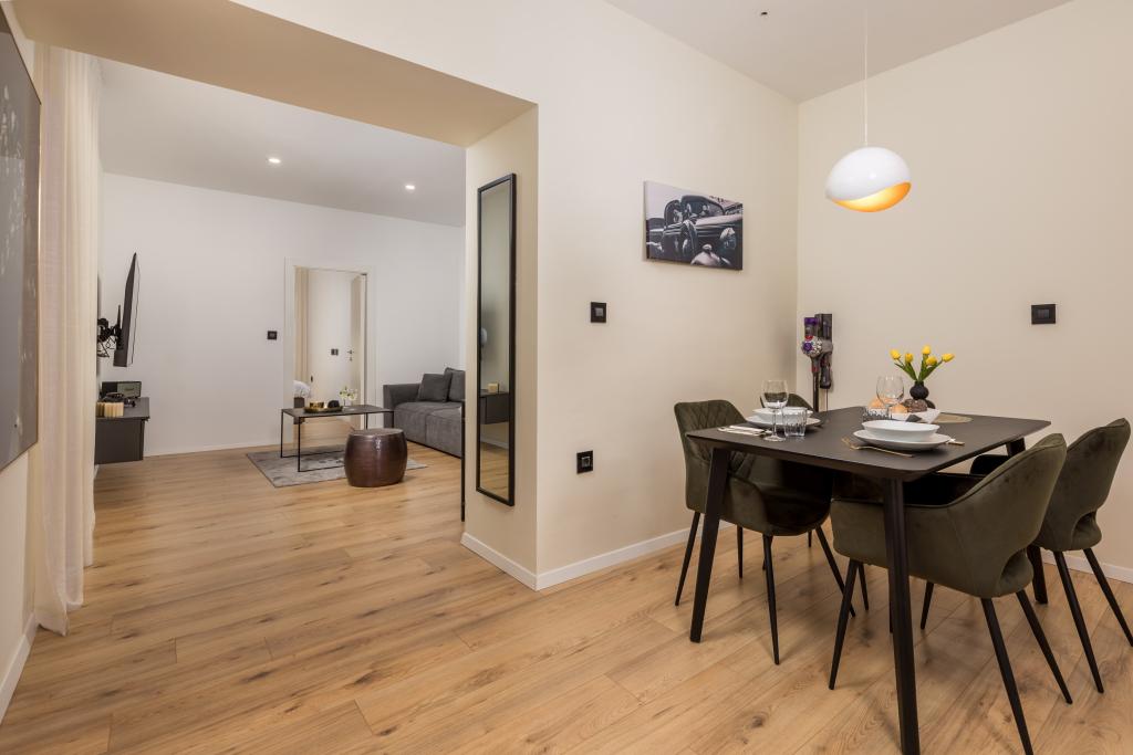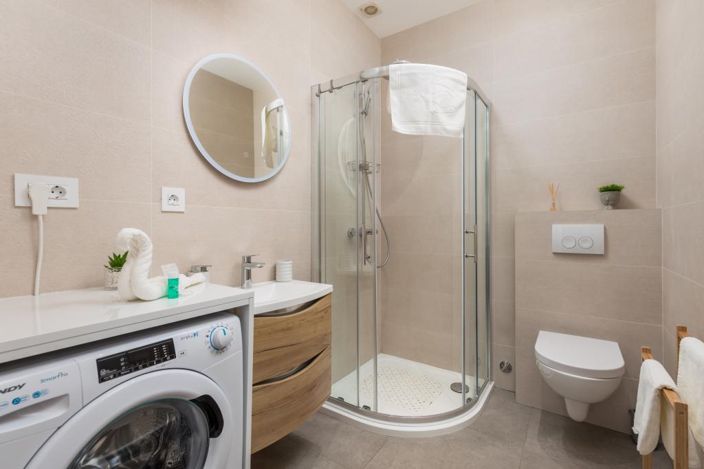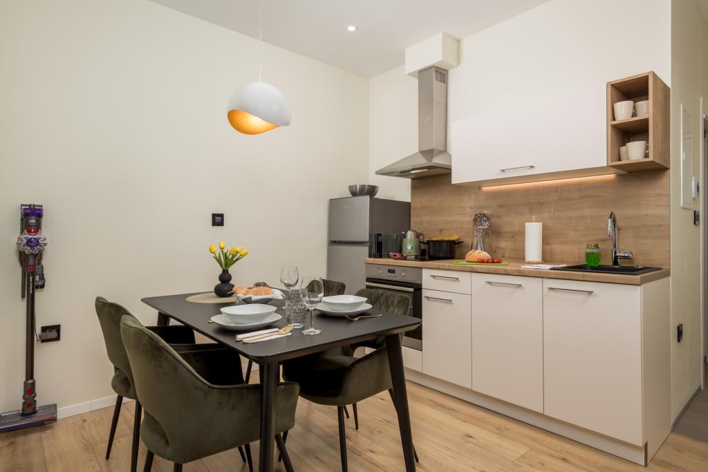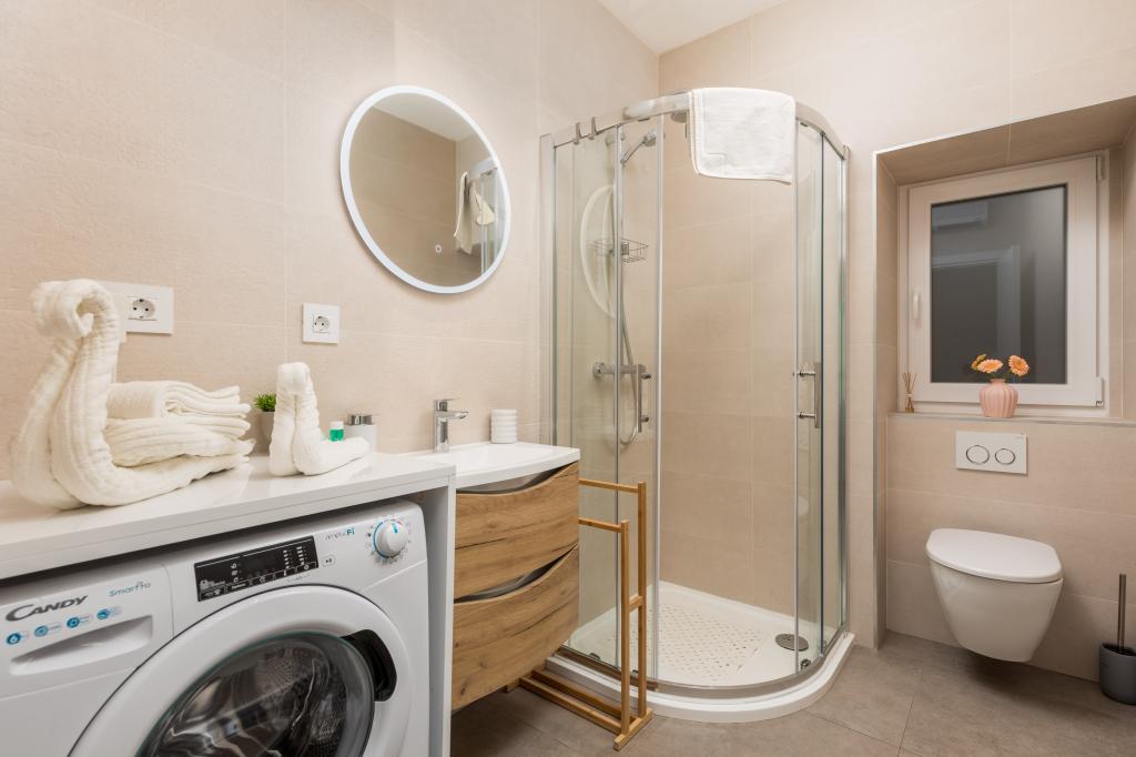 Accommodatie van topkwaliteit in het centrum van Rijeka, 5 nieuwe en volledig uitgeruste appartementen die u ideaal comfort bieden voor uw verblijf in Rijeka. Alle appartementen hebben een volledig uitgeruste keuken, eetkamer en woonkamer met Netflix TV, modern ingerichte slaapkamers met tweepersoonsbedden, badkamers met douche en toilet. Handdoeken en beddengoed zijn ook aanwezig in elk appartement.