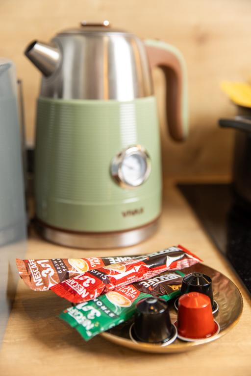 Koffiezetapparaat Magnetron Kookplaat Koelkast Vaatwasser TV met Netflix en EON TV Comfortabele slaapbank voor 2 personen Airco voor verwarming/koeling Modern ingerichte slaapkamer met tweepersoonsbed. Badkamer met douche en toilet met wasmachine.
