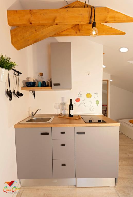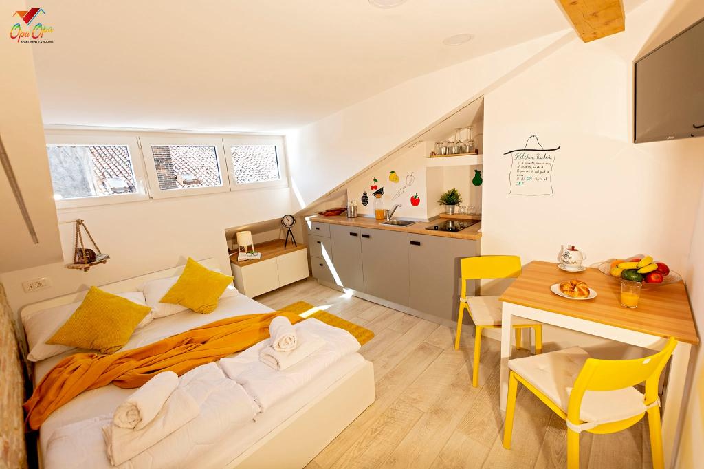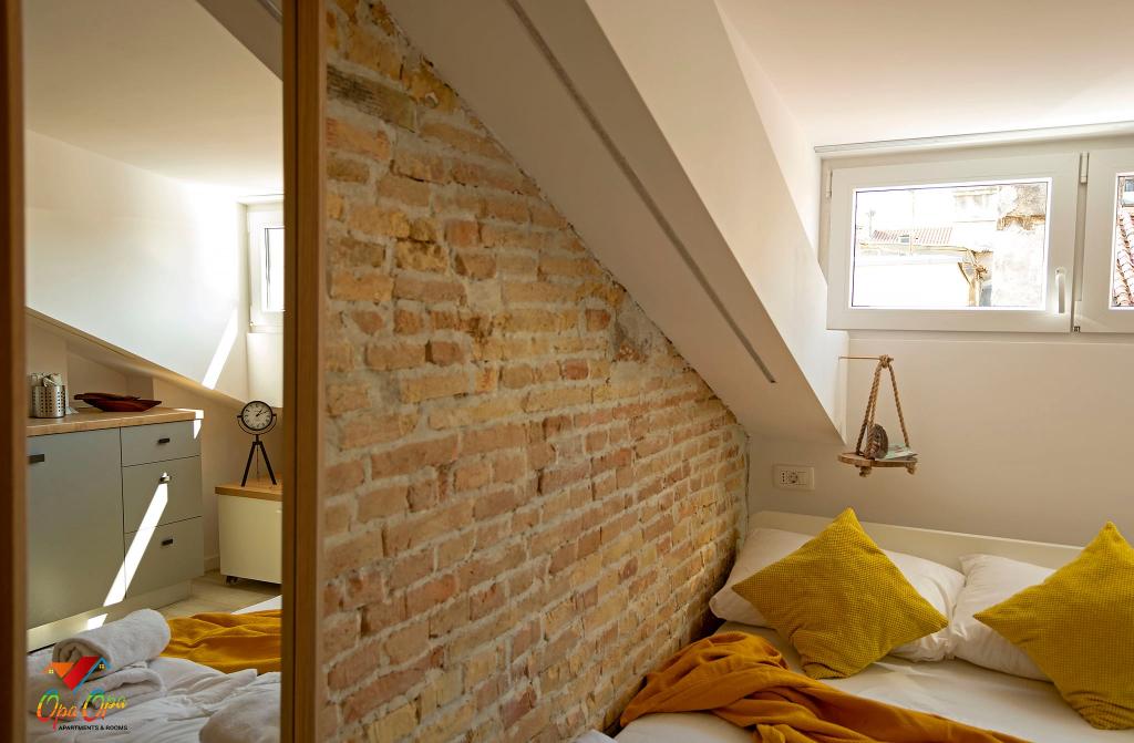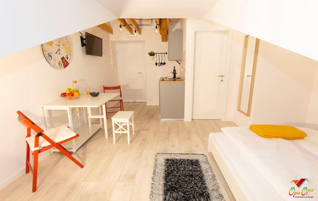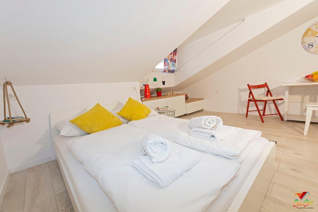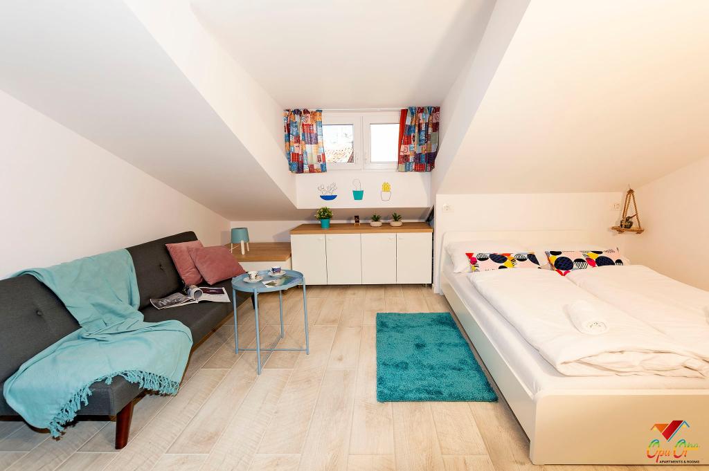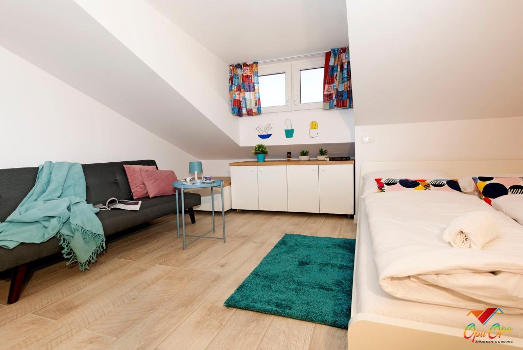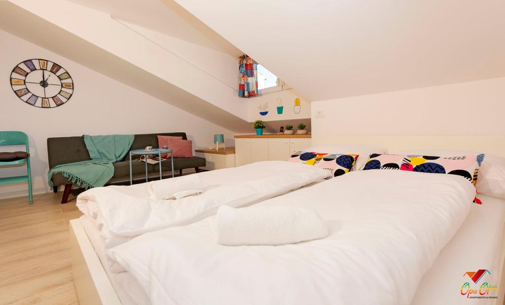 Appartement Opa Gold ligt in het stadscentrum, naast de belangrijkste boulevard 'Korzo', op een steenworp afstand van de zee en de stadsmarkt. 1 minuut lopen van het Kroatische Nationale Theater Ivan Zajc en 300 meter van het Maritiem en Historisch Museum van de Kroatische kust. Opa Gold is een volledig uitgerust ruim appartement, afmeting 50m2. Het bestaat uit twee kamers met een woonkamer, een keuken, een eetkamer en een moderne badkamer met een douche, een wasmachine, een wasdroger en een haardroger. De keuken is voorzien van de modernste inbouwapparatuur, oven, magnetron, gasfornuis, vaatwasser. De bedden zijn voorzien van matrassen met 7-zone pocketkernen compleet met anatomische kussens, tevens voorzien van antibacteriële hoezen. In de directe omgeving van het appartement bevinden zich talloze restaurants, koffiebars, winkels, de Stadsbibliotheek, een apotheek en andere noodzakelijke voorzieningen.