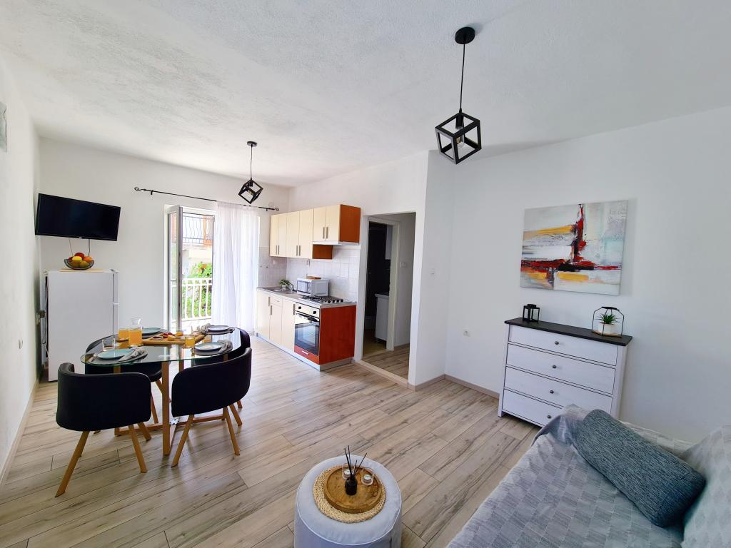 Eigenaresse Sonja is erg vriendelijk en altijd bereikbaar. Het appartement is schoon en netjes. Pluspunten zijn het strand en de taverne onder de app en het prachtige uitzicht op zee vanaf het terras.