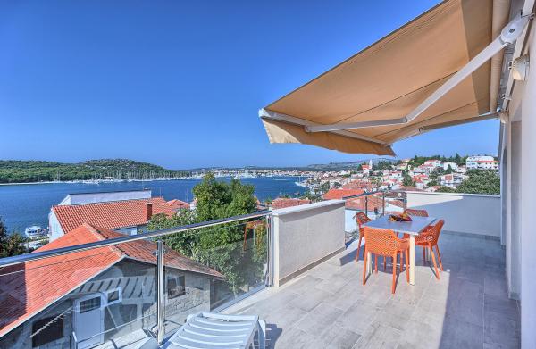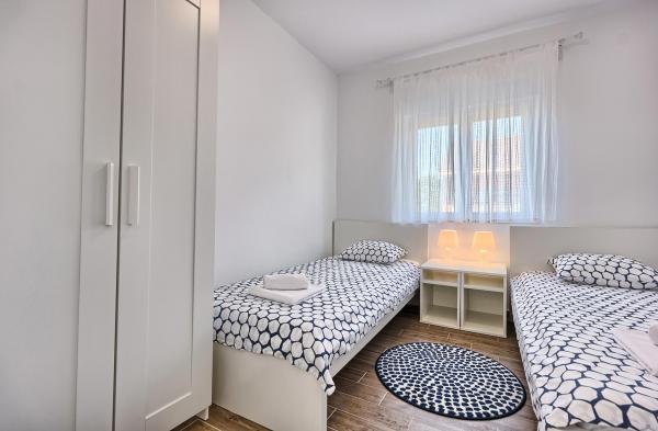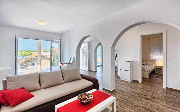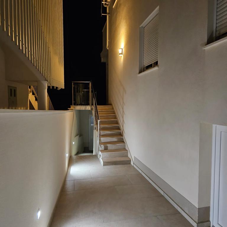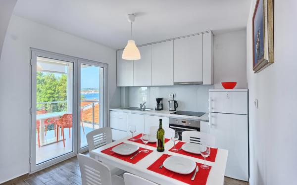 Volledig en modern ingerichte appartementen gelegen op 200 m van het centrum van Rogoznica, 70 m van de zee. We bieden 3 onlangs gerenoveerde appartementen van verschillende groottes, elk met een eigen ingang, een terras met uitzicht op zee en een barbecue is ook beschikbaar. Alle appartementen hebben televisie met satellietprogramma's, internet en airconditioning, en de mogelijkheid om een wasmachine en een extra toilet te gebruiken, en de keuken heeft een vaatwasser. De uitgelichte prijs is inclusief gebruik van airconditioning, onbeperkt internet, toeristenbelasting en parkeren.