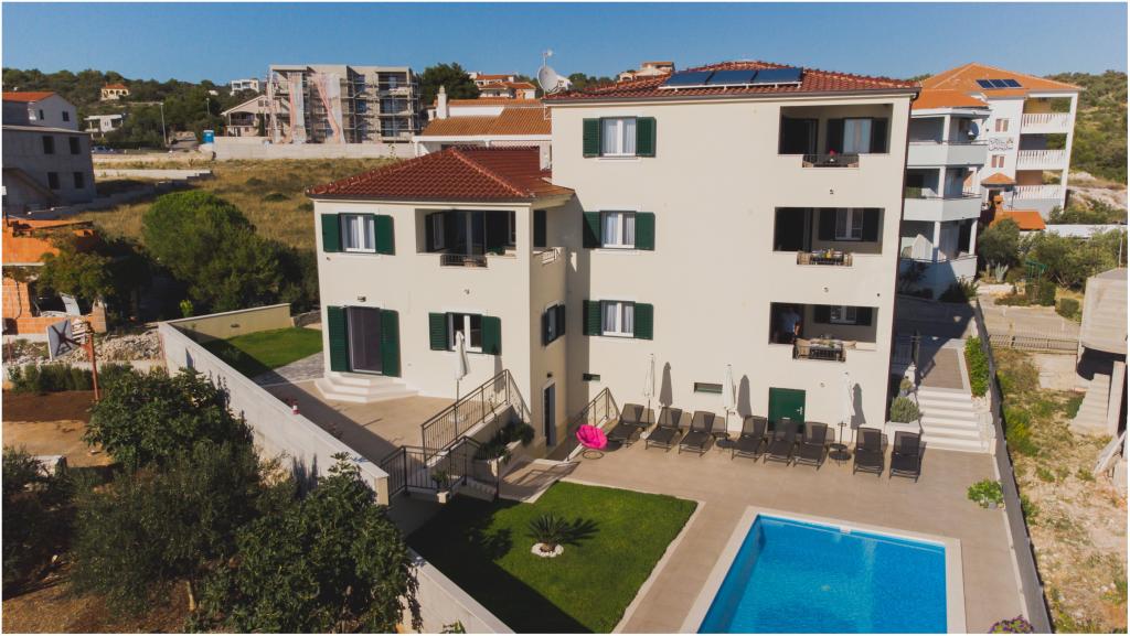 Apartments Faro is gelegen in een rustige mediterrane stad Zečevo, niet ver van Rogoznica, in het hart van Dalmatië. Dankzij de nabijheid van de zee biedt elk appartement een prachtig uitzicht op de blauwe zee. Het zwembad en de barbecue garanderen u ook volledige ontspanning in onze accommodatie. De plek ademt een familiale sfeer uit en de appartementen zijn een ideale plek voor een vakantie met kinderen. De plaats ligt dicht bij grote centra en steden die rijk zijn aan cultureel en historisch erfgoed