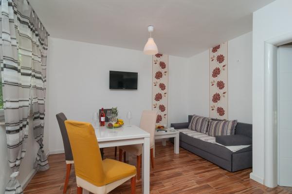 Advies op basis van verblijf in appartementen A1 en B1 in 2021. Zeer aardige en behulpzame eigenaren. Ze hebben geen last van dieren. Goed uitgeruste appartementen. Functionele kitchenette, koelkast, airconditioning, tv. Voldoende ingericht om spullen in koffers te bewaren. De appartementen zijn zo gelegen dat gasten elkaar niet storen. Elk appartement heeft een plek om buiten te rusten. Er zijn bomen die schaduw geven. Een veilige plek voor gezinnen met kleine kinderen. Stranden, winkels, vismarkt, restaurants, geldautomaten, wisselkantoor, ijs zijn heel dichtbij. De omgeving kan worden verkend op fietsen, die beschikbaar zijn voor de gasten. Het is zoals de foto's laten zien. Rogoznica is een prachtige plek.
