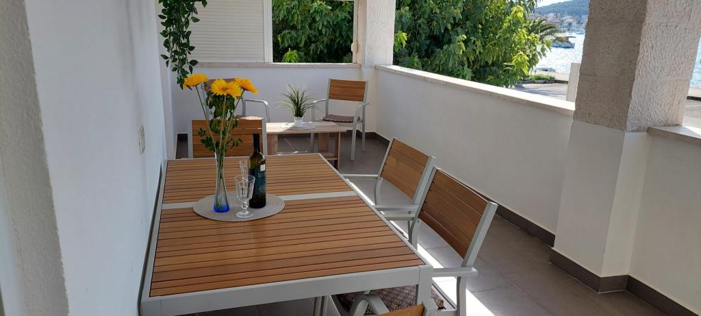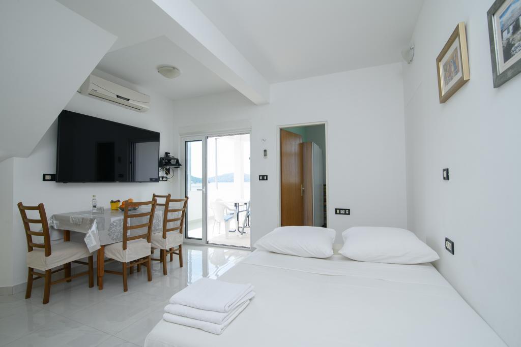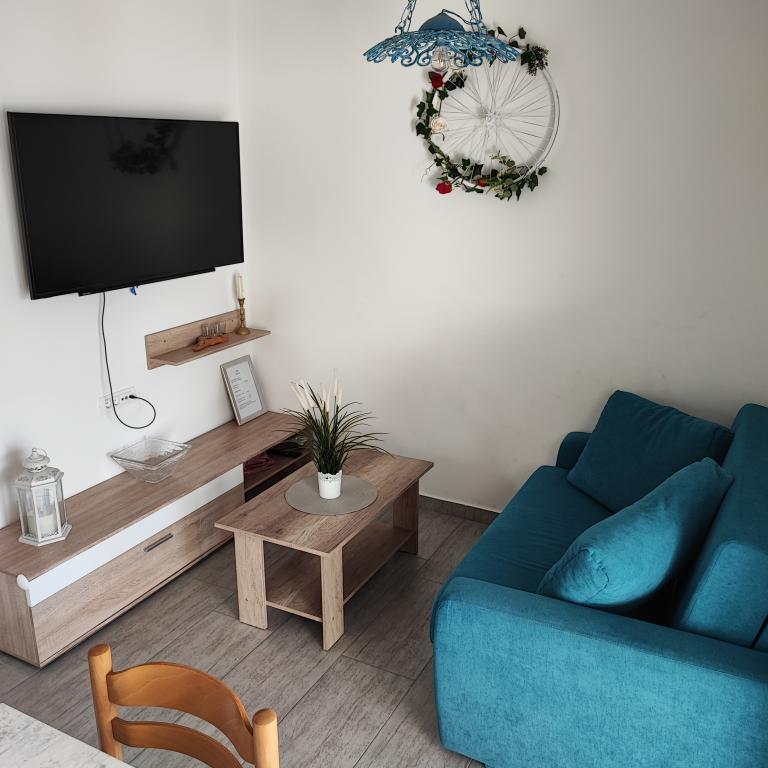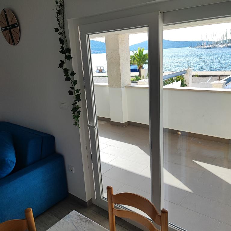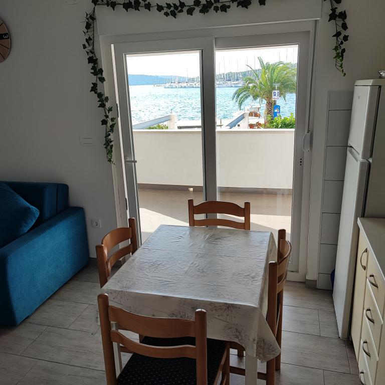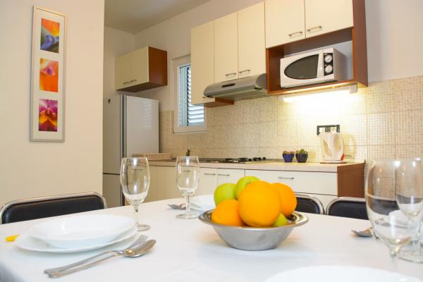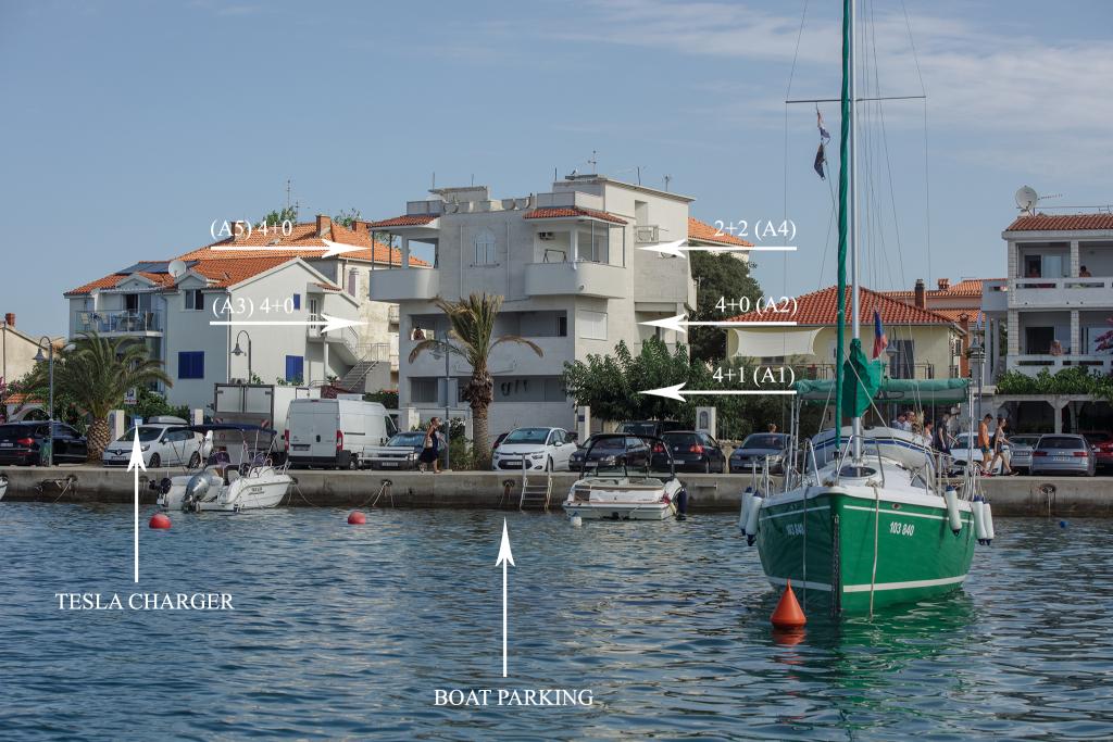 De appartementen zijn gelegen op de eerste rij aan zee met een prachtig uitzicht op de zee en de jachten. In de buurt is er een bank, een geldautomaat, winkels, souvenirwinkels, een markt en restaurants, zodat gasten al hun vrije tijd exclusief voor hun vakantie hebben. De plaats is omgeven door een lange wandeling die ook wordt gebruikt om te fietsen.