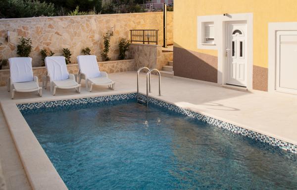 Huis met zwembad en 3 moderne appartementen in Zecevo buurt Rogoznica, op 30 meter van het strand. De woning is gelegen op 3 km van Rogoznica en 6 km van Primosten.
