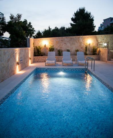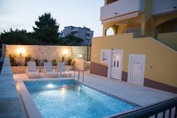 De moderne appartementen van een hoge standaard en goed uitgerust. Het beschikt over een zwembad. Heel dicht bij de zee. Een aparte strand met ligstoelen en parasolami.Na beach bar waar heerlijke koffie en koude dranken. Zeer vriendelijke en gastvrije gastheer. In de buurt van het Nationaal Park Krka, Rogoznica - Jachthaven Frapa, Primosten. De perfecte plek voor een zorgeloze vakantie.