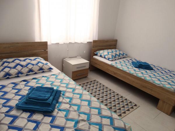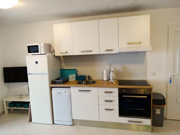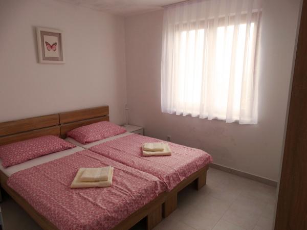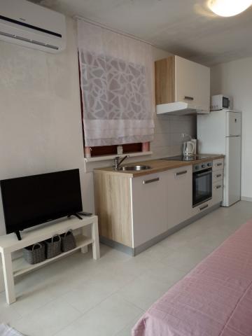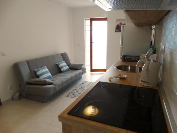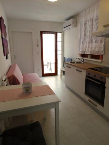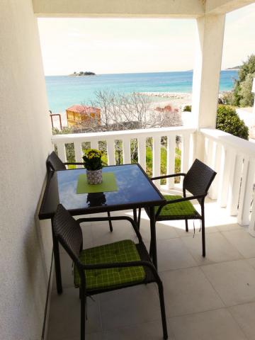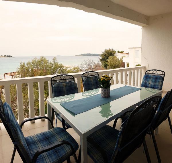 Volledig en modern ingerichte appartementen zijn bedoeld voor iedereen die een rustige familievakantie wenst. De faciliteit is gelegen op de eerste rij aan zee en biedt directe toegang vanuit de tuin tot het strand. Het kleinere appartement is uitgerust met 2 bedden en een slaapbank. Het grote appartement is uitgerust met 2 eenpersoonsbedden, 1 tweepersoonsbed en een slaapbank. De keukens zijn uitgerust met keramische kookplaten en ovens, een magnetron, een combikoelkast en een vaatwasser (groot appartement). De moderne badkamers zijn voorzien van douches, toiletten, wastafels en een wasmachine (groot appartement). Elk appartement heeft een eettafel met stoelen. Op de terrassen zijn er: een tafel met 3 stoelen (klein appartement) en een tafel met 6 stoelen (groot appartement). De appartementen zijn ook uitgerust met een tv, WiFi-internet en airconditioning. Er is parkeergelegenheid voor meerdere auto's. De tuin is versierd met inheemse planten, olijfbomen, laurier en de beste lokale vijgen.