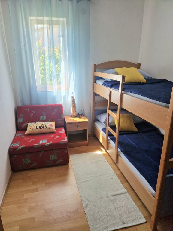 Volledig ingerichte appartementen in een rustige buurt van het toeristenoord. Ze bieden u alles wat u nodig heeft voor uw perfecte vakantie. Het strand ligt op slechts 30 meter afstand. Het centrum ligt op slechts 10 minuten lopen. Dicht bij alle voorzieningen; stranden van lozica en šepurine, jachthaven van Frapa met een nacht- en casinoclub en vele uitgaansgelegenheden, een centrum met restaurants, een postkantoor, een kliniek, een apotheek, een markt en andere winkels. Twee markten op slechts 1100 m, Tommy en fruit.