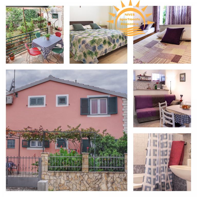 We brachten de laatste 10 dagen van juni 2021 door in het appartement Nives, een groot en comfortabel appartement voor 5 personen met twee slaapkamers, badkamer, woonkamer en keuken. Daarnaast een zeer groot, comfortabel terras in de schaduw van planten die groeien in een mooie tuin. In de tuin staat een barbecue met een overdekte buitenkeuken en een eettafel. Het appartement is volledig uitgerust, zelfs met een strijkijzer en een blender ter beschikking van de gasten. Opgewonden, gastvrije eigenaren verwelkomden ons met rakija en koud bier. Een paar minuten lopen naar het strand, evenals naar de stad. Wij adviseren!