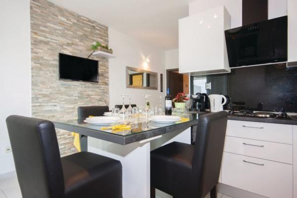 In ons vakantiehuis zijn er 4 moderne appartementen. Elk van de appartementen heeft twee slaapkamers en een modern uitgeruste keuken en badkamer om uw verblijf zo aangenaam mogelijk te maken. Twee appartementen op de begane grond hebben een terras waar u van kunt genieten aan de baai en het nabijgelegen Rogoznica. De overige twee appartementen in ons huis bevinden zich op de eerste verdieping, twee verdiepingen en hebben een balkon dat ook een prachtig uitzicht biedt. Ons object bevindt zich in een rustig dorp Zatoglav, op slechts 5 minuten rijden van Rogoznica met de auto of boot, en op 30 meter van het strand.