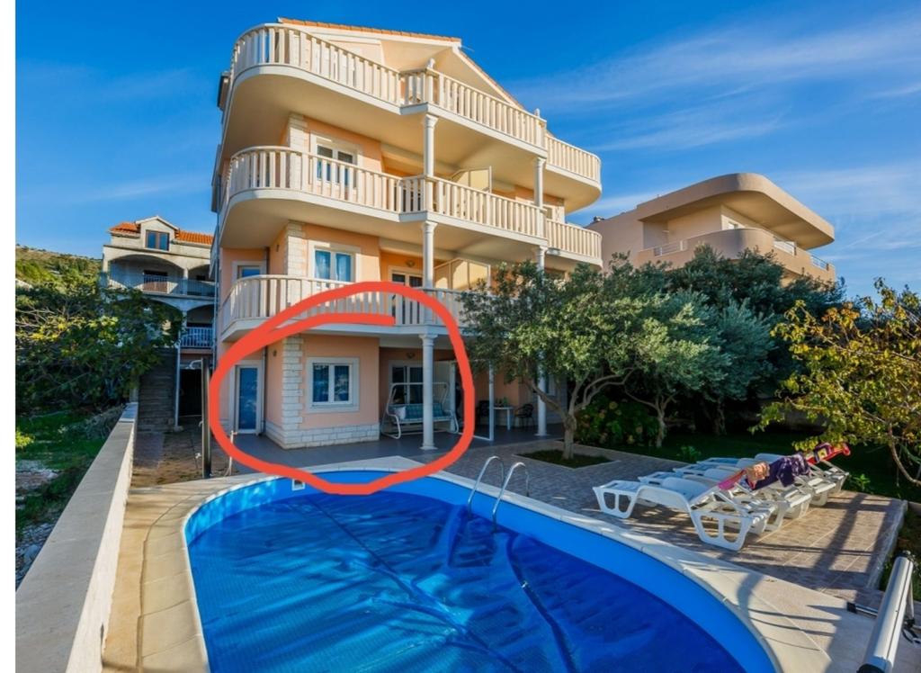 Geniet van appartementen met zeezicht en een zwembad, vlakbij het kiezelstrand met uitzicht op Rogoznica en de open zee. Zatoglav is een rustige plek, ver weg van de drukke hoofdweg, lawaai en mensenmassa's, en ligt op slechts een paar kilometer van Rogoznica. We hebben 6+1 appartementen voor 26 personen. Vier appartementen hebben een comfortabele slaapkamer, een keuken met fornuis en oven, een grote bank voor twee volwassenen, een badkamer, een terras en airconditioning. Het vijfde appartement op de bovenste verdieping heeft twee slaapkamers, twee badkamers en een groot terras. Het zesde appartement bevindt zich op de begane grond en is geschikt voor drie personen. Er is ook een apart huisje vlakbij ons huis voor twee personen. De prijs is inclusief toeristenbelasting, schoon beddengoed, airconditioning, handdoeken en servies, gebruik van de buitendouche en barbecue. P.S. Het strand ligt op precies 66 meter lopen van het huis, of 27 meter hemelsbreed. Welkom.