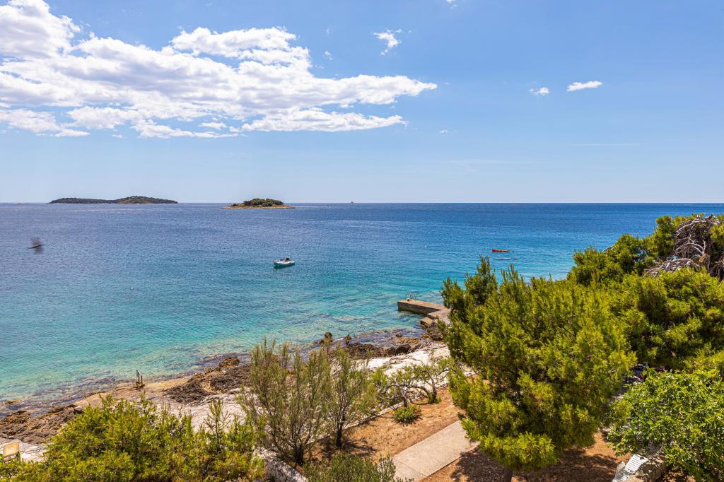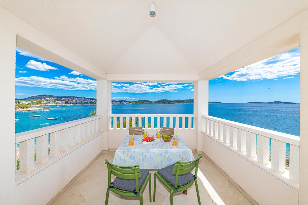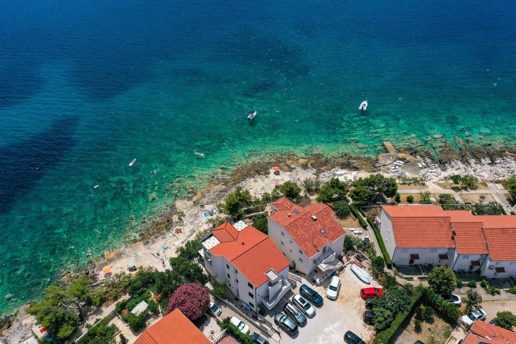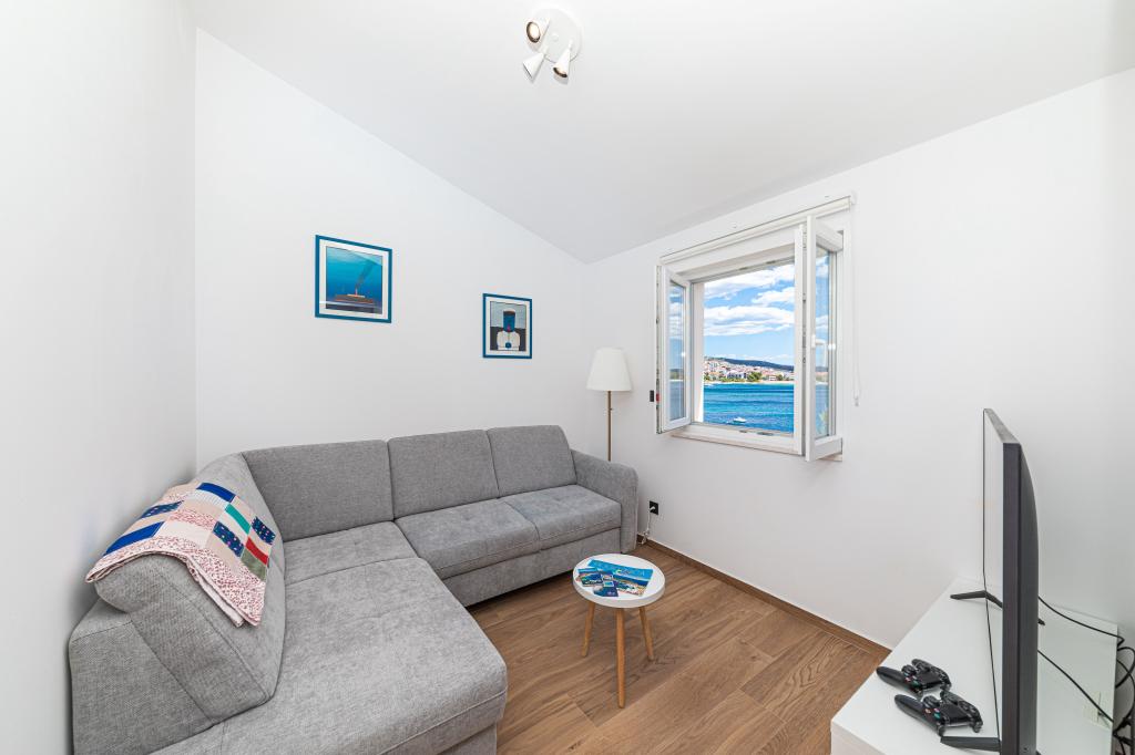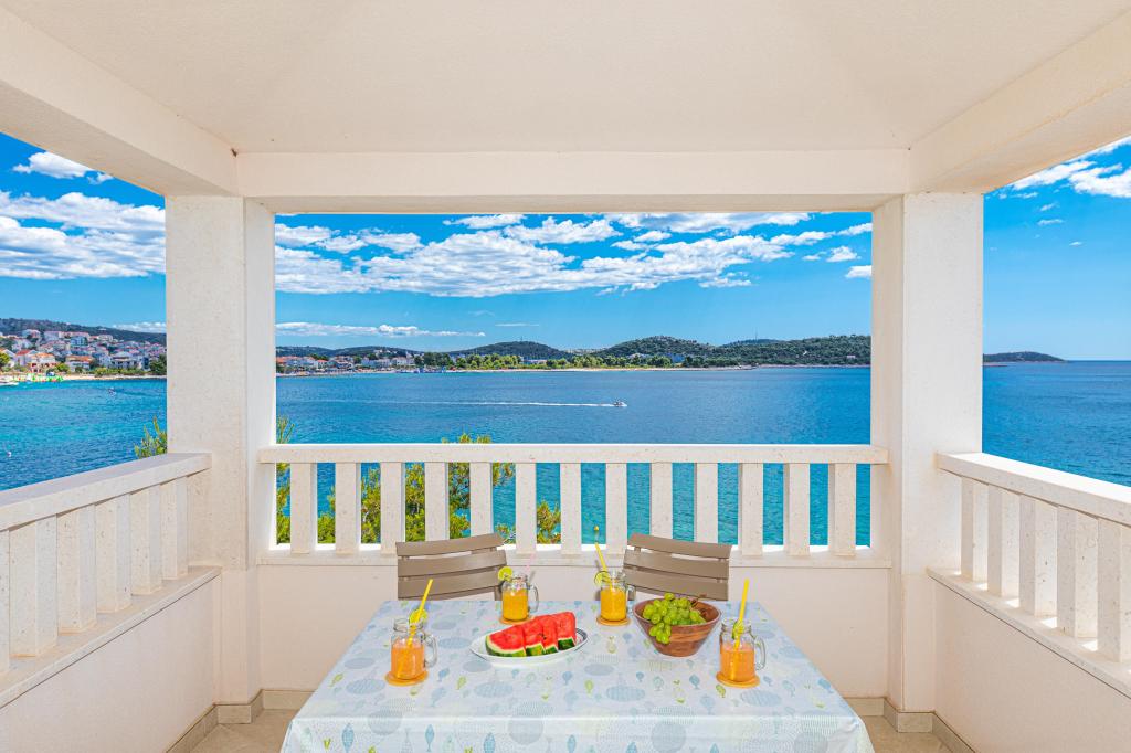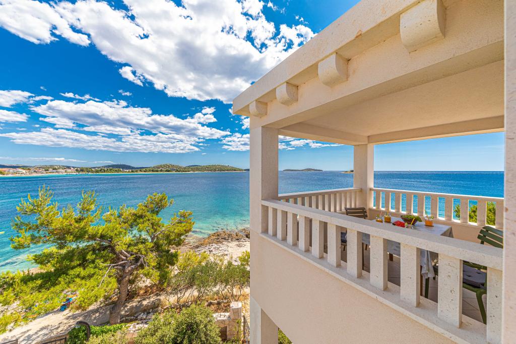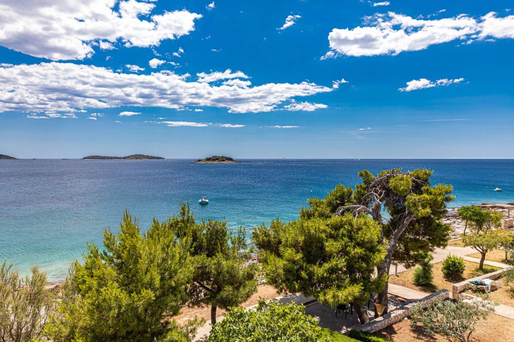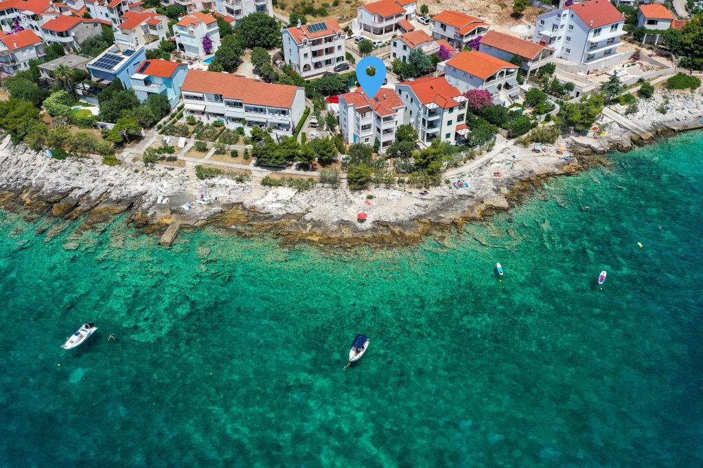 Villa Orazur - Gelegen in het pittoreske stadje Rogoznica, ligt deze villa op de eerste rij aan zee, op slechts 10 meter van het strand. Ideaal voor familietoerisme, de villa biedt een buitengewone ervaring van de blauwe zee en volledige ontspanning. Op de eerste verdieping van de villa bevinden zich twee volledig nieuwe en modern ingerichte appartementen. Elk appartement straalt warmte en comfort uit, met een ruim interieur en zorgvuldig geselecteerde details. De terrassen met een spectaculair uitzicht op de zee zijn de ideale plek om te genieten van uw ochtendkoffie of om 's avonds te ontspannen met het geluid van de golven. De terrassen zijn ruim genoeg om te dienen als buitenwoonkamer, waar u volop kunt genieten van de charmes van het mediterrane leven. De appartementen zijn voorzien van alle moderne voorzieningen om uw verblijf zo aangenaam en zorgeloos mogelijk te maken. Naast accommodatie van topkwaliteit biedt de villa ook beveiligde parkeergelegenheid, waardoor u zorgeloos aankomt en gemakkelijk toegang heeft tot alle lokale bezienswaardigheden.