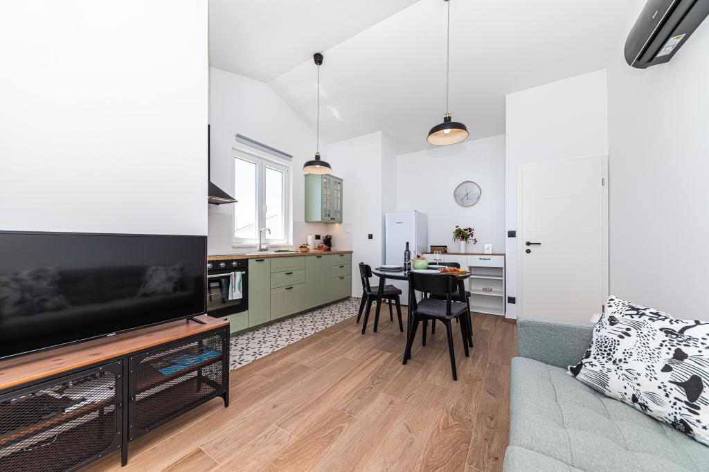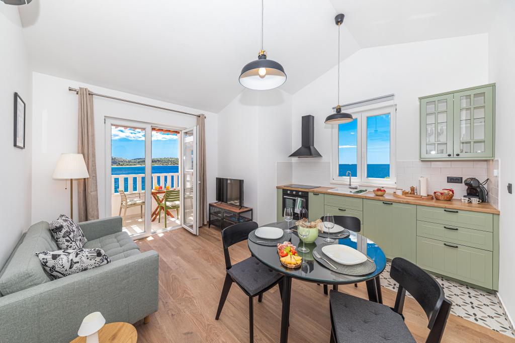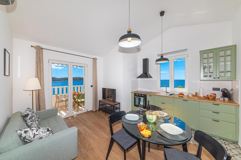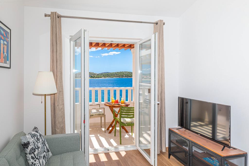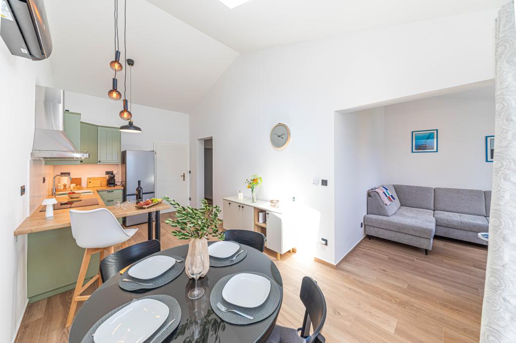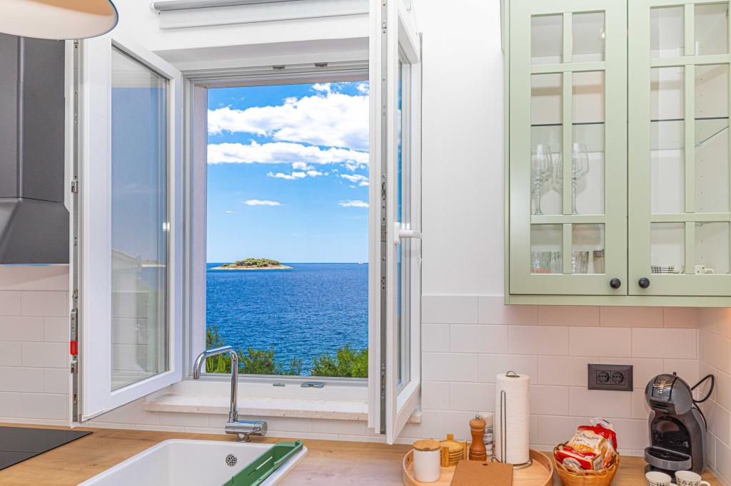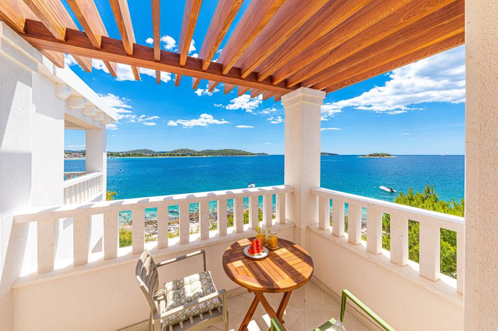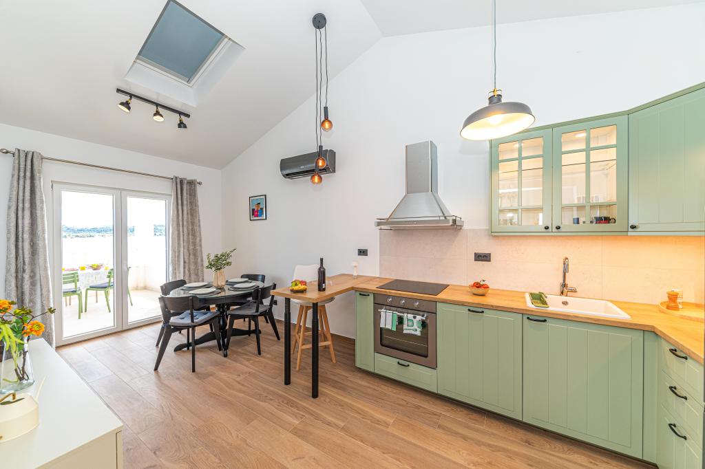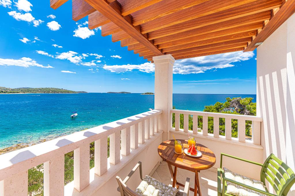 Villa Orazur - Gelegen in het pittoreske stadje Rogoznica, ligt deze villa op de eerste rij aan zee, op slechts 10 meter van het strand. Ideaal voor familietoerisme, de villa biedt een buitengewone ervaring van de blauwe zee en volledige ontspanning. Op de eerste verdieping van de villa bevinden zich twee volledig nieuwe en modern ingerichte appartementen. Elk appartement straalt warmte en comfort uit, met een ruim interieur en zorgvuldig geselecteerde details. De terrassen met een spectaculair uitzicht op de zee zijn de ideale plek om te genieten van uw ochtendkoffie of om 's avonds te ontspannen met het geluid van de golven. De terrassen zijn ruim genoeg om te dienen als buitenwoonkamer, waar u volop kunt genieten van de charmes van het mediterrane leven. De appartementen zijn voorzien van alle moderne voorzieningen om uw verblijf zo aangenaam en zorgeloos mogelijk te maken. Naast accommodatie van topkwaliteit biedt de villa ook beveiligde parkeergelegenheid, waardoor u zorgeloos aankomt en gemakkelijk toegang heeft tot alle lokale bezienswaardigheden.