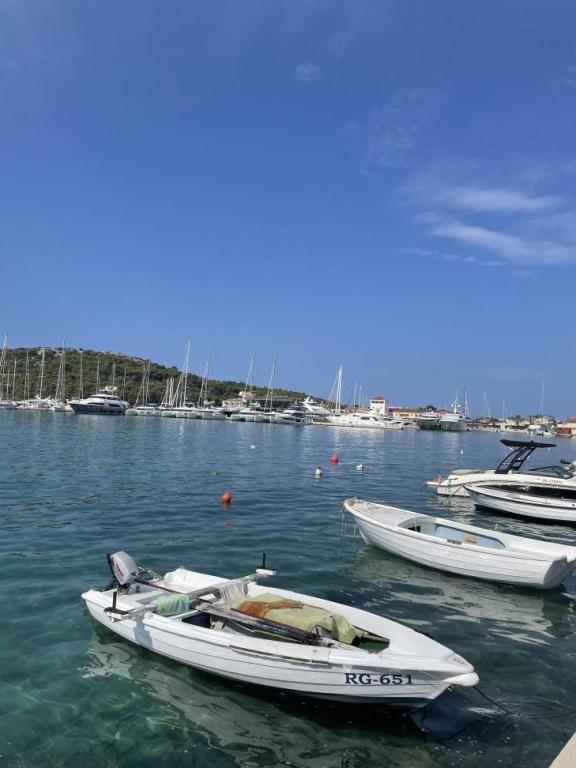Volledig modern ingerichte appartementen met keuken, vaatwasser, koelkast, vriezer, fornuis, oven, compleet servies, wasmachine, alle kamers zijn voorzien van airconditioning, gratis internet, gratis privéparkeergelegenheid, alles in een rustige omgeving, op slechts een paar minuten lopen van het prachtige strand, schone en heldere zee, waar u heerlijk kunt zwemmen, duiken en windsurfen. Dichtbij het winkelcentrum. Dichtbij het stadscentrum, waar op het centrale plein verschillende evenementen, concerten en lokale festivals plaatsvinden. Kiezelstrand. U kunt Marina Frapa in Rogoznica, het Drakenoogmeer midden in de berg en het Lavendellabyrint bezoeken.