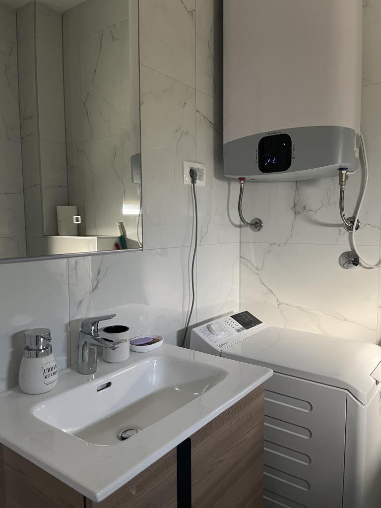 Het appartement is gelegen aan de rand van de stad, een rustige, vredige buurt, op een paar minuten lopen van de zee en een prachtig, intiem strand. Het enige probleem is dat je, om de stad te bereiken, door de straten moet dwalen. Het appartement is schoon, mooi ingericht, nieuw meubilair in de keuken, alles wat nodig is voor mensen die hun eigen maaltijden willen bereiden. Ik raad het aan