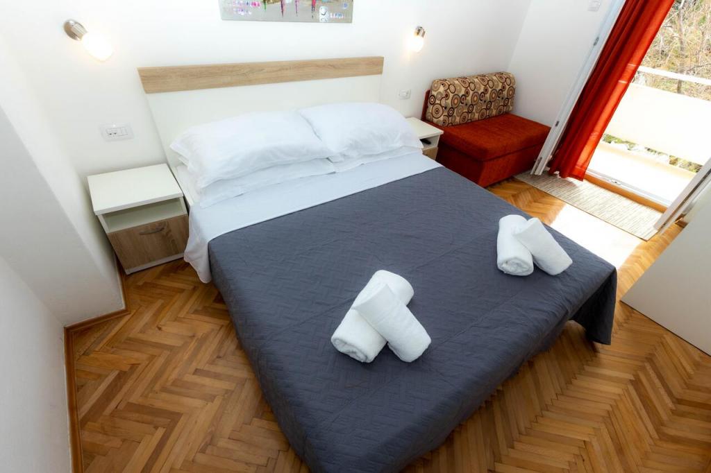 Apartments Punta ligt in het kleine stadje Rovanjska, aan de voet van Velebit, op 30 km van Zadar. Ze bevinden zich in het toeristische gedeelte van de eerste rij van het dorp naar de zee, op slechts 3 meter van het strand. Het terras biedt een prachtig uitzicht op de zee en een bijzonder mooie zonsondergang. De appartementen zijn modern en volledig uitgerust. Ze bevinden zich op de eerste verdieping van het toeristengebouw en onder het terras is er een dagelijks, rustig café dat 's nachts niet werkt en het verblijf in de appartementen niet verstoort. De stad Rovanjska ligt aan de voet van de afrit van de snelweg (Maslenica), die uitstekende toegang tot de weg biedt. de plaats zelf herbergt ook de Adventure Modric Cave. .