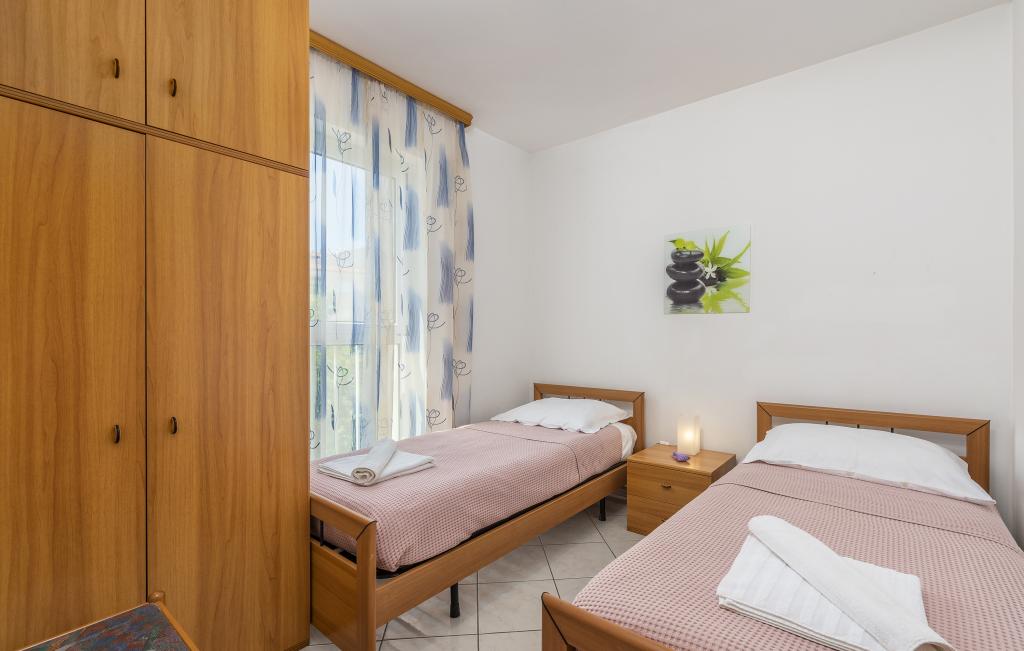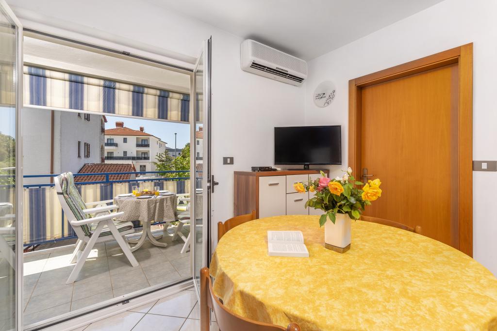 Het appartement ligt op slechts 400 meter van de zee (5 minuten lopen) en op 20 minuten lopen van het stadscentrum (800 meter). Het appartement bevindt zich op de eerste verdieping van het gebouw en bestaat uit twee slaapkamers: één met een tweepersoonsbed en de andere met twee eenpersoonsbedden. De keuken, eetkamer en woonkamer hebben toegang tot een prachtig balkon met uitzicht op het groen en de omgeving. De keuken is van alle gemakken voorzien: 3 gaspitten, 1 elektrische kookplaat, broodrooster, oven en waterkoker. De woonkamer heeft satelliet-tv en airconditioning. De badkamer heeft een douche, wasmachine en bidet. Er is parkeergelegenheid voor de deur (tegen betaling, € 7 per dag). Er is een fitnessruimte en pilatesstudio in het gebouw zelf. Dit appartement biedt u een volledig ontspannen en aangenaam verblijf vlakbij de prachtige stranden van Rovinj, waar u vrijwel geen auto hoeft te gebruiken. Wij staan voor u klaar voor al uw vragen!