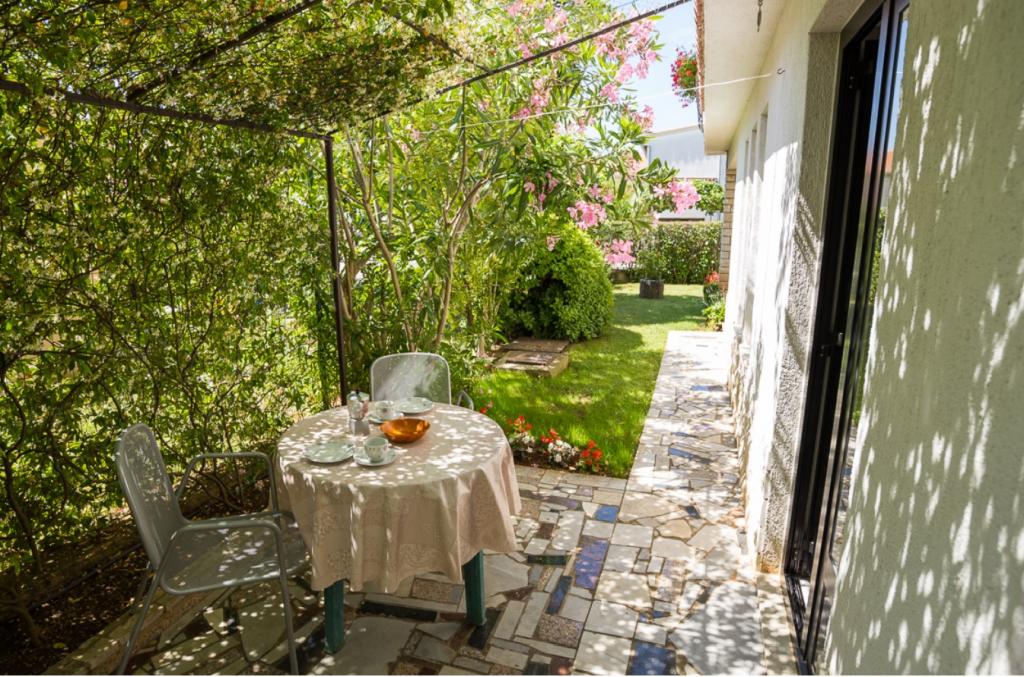 We brachten een familievakantie van een week door in het prachtige appartement van Ines. Het appartement is gedeeltelijk ondergronds, dus op warme dagen was het binnen niet zo warm, ook al hebben ze een werkende airconditioning. Het appartement is precies zoals op de foto's, met een groot groen terras in halfschaduw, wat erg handig was voor ons kind. In eerste instantie misten we enkele spellen op het terras, maar al snel kwamen we erachter dat er genoeg andere spellen in de buurt waren. Het is 10-15 minuten lopen naar het strand, de straat is rustig en de eigenaar is erg vriendelijk en eerlijk. De keuken heeft ook voldoende keukengerei om zelf te koken. We voelden ons goed in het appartement en bevelen het aan aan gezinnen.