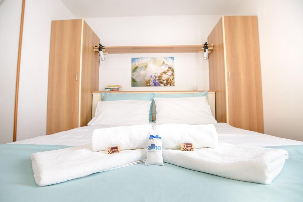 Lees meer Accommodatie eenhedenBelangrijke opmerking! De dagprijzen zijn gebaseerd op een verblijf van 6 dagen of meer. Voor een korter verblijf bedraagt de toeslag: 1 nacht + 30%; 2-3 nachten + 15%; 4-5 nachten + 8%. Extra bed + € 15. Korting bij langer verblijf en een kleiner aantal personen in het voor- en naseizoen, afhankelijk van het aantal dagen en personen (speciale aanbieding). Aanbetaling 30%. Inchecken vanaf 15:00 uur; uitchecken vóór 10:00 uur.