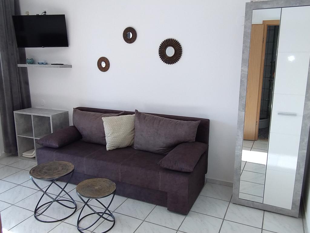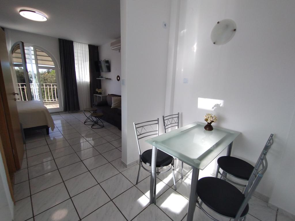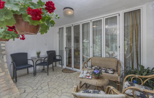 Lees meer Accommodatie eenhedenAankomsttijd is vanaf 15.00 uur Vertrek is tot 10.00 uur Reservering: Vooruitbetaling voor reservering bedraagt maximaal 30% van het bedrag. De rest wordt contant betaald op de dag van aankomst. Bijkomende kosten: Extra bed € 20 / 1 nacht. De eindschoonmaak bedraagt € 30 voor een klein of € 40 voor een groot appartement. De prijs voor een hond is 15 € / 1 nacht (in het voor- en najaar heeft u korting) Een kleine hond tot 5 kg is 10 € / 1 nacht Wij accepteren GEEN gevaarlijke en grote hondenrassen Appartement nummer 5 en App. nummer 6 / Accepteert GEEN huisdieren.