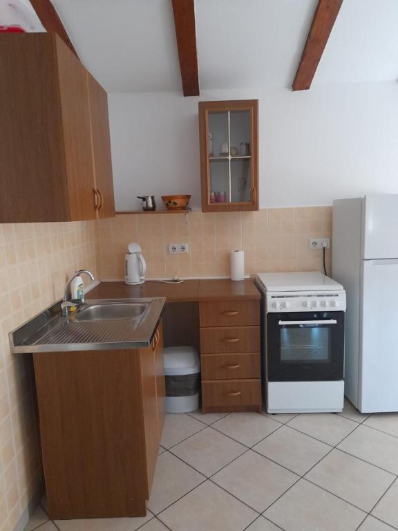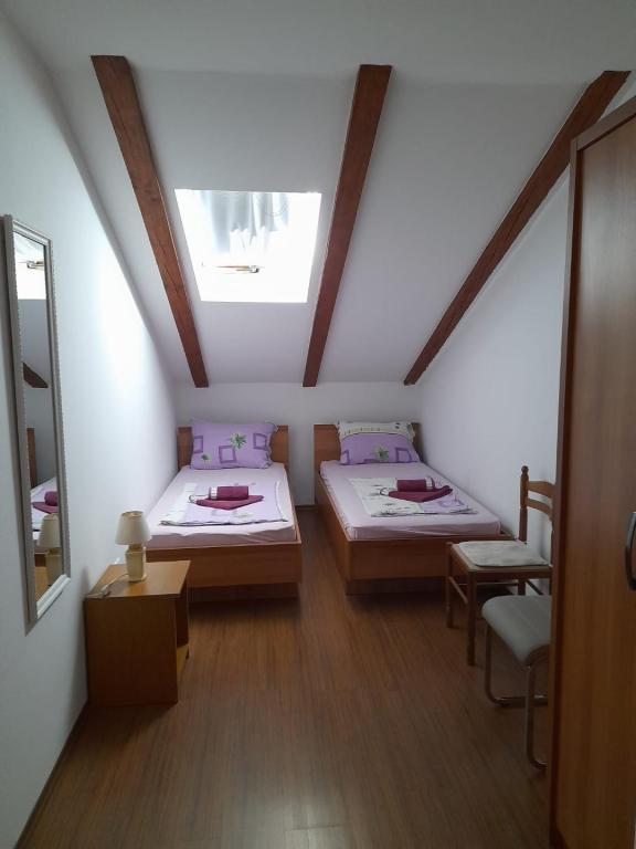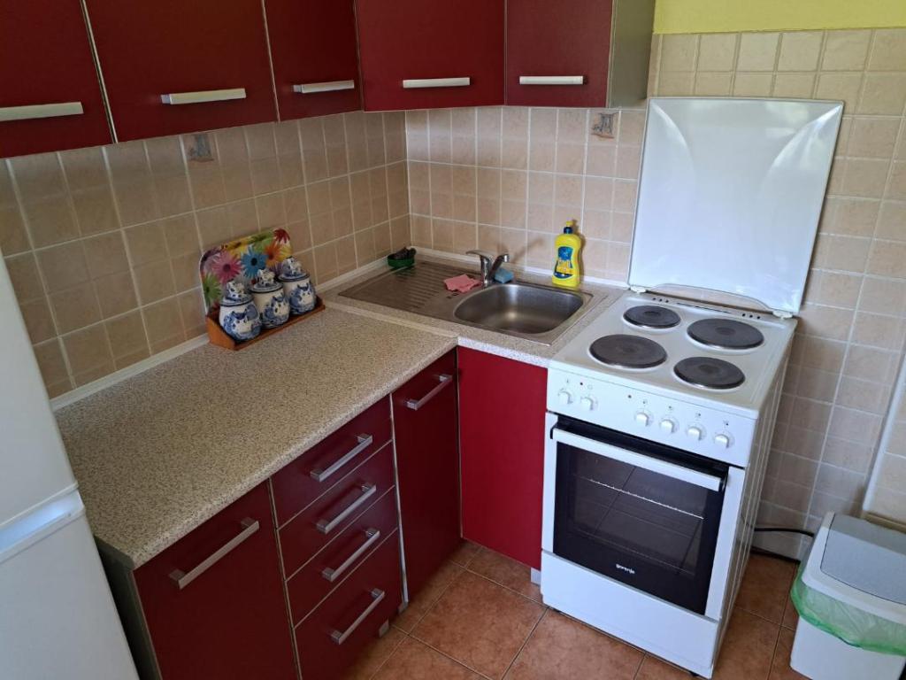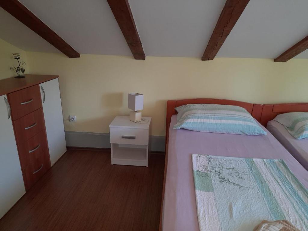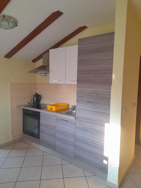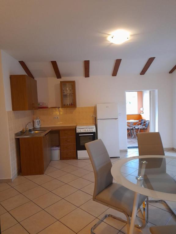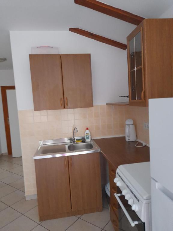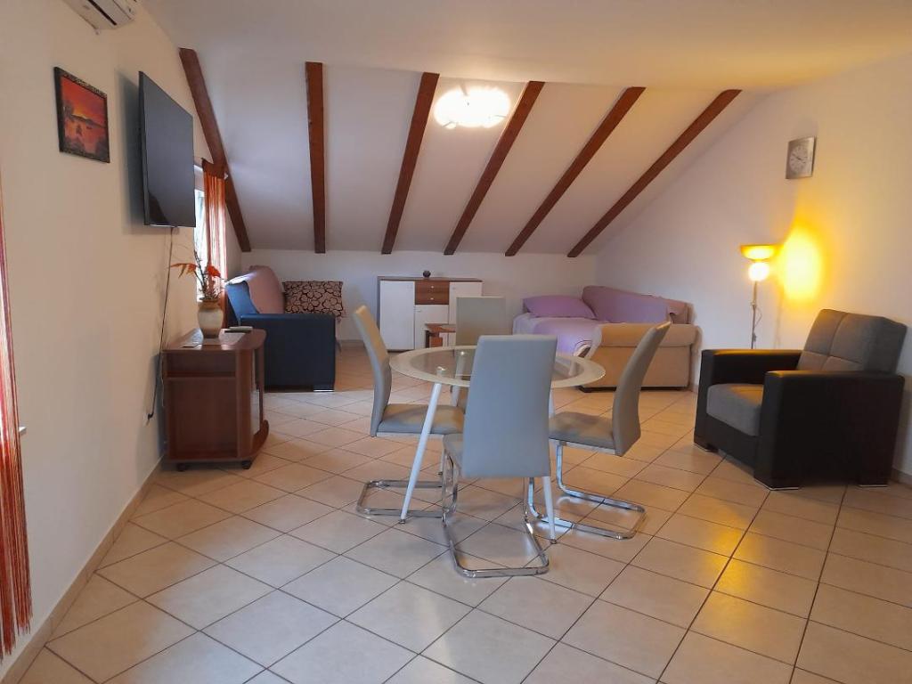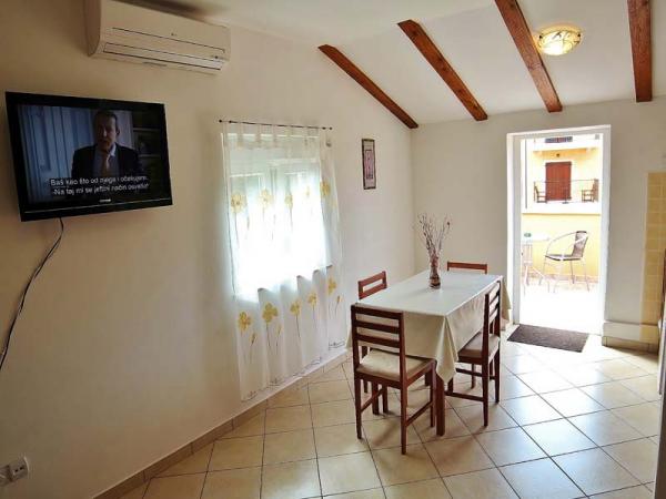 Het appartement is zeer schoon, goed onderhouden, keuken (kitchenette) uitgerust met de nodige apparatuur om een maaltijd te bereiden - volledig voldoende, een bijkomend voordeel is het overdekte terras waar u kunt zitten met een kopje koffie of 's avonds met een drankje. De omgeving is erg rustig en u kunt ontspannen. Gastheer mevrouw Dragica erg aardig en behulpzaam. Naar het dichtstbijzijnde strand max. 15 minuten lopen, naar de stad ongeveer 20 minuten. aanraden
