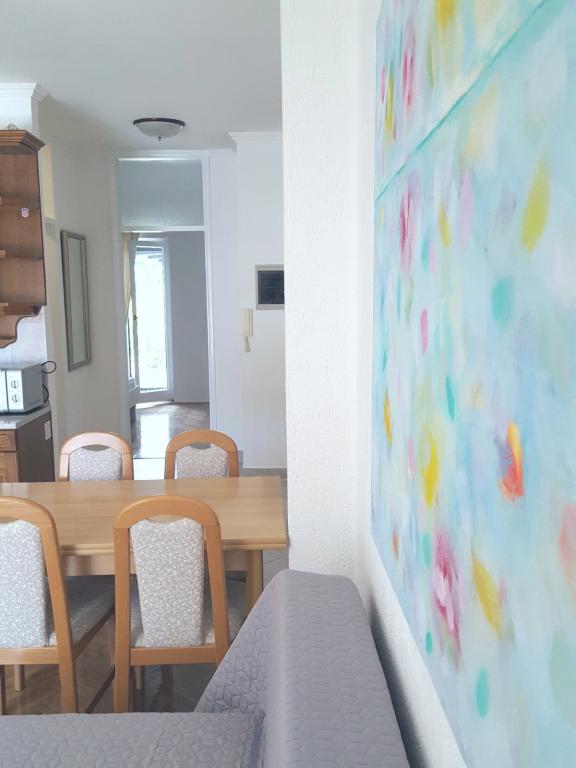 Alles was zoals het zou moeten zijn. De beschrijving van het appartement komt overeen met de advertentie. Het heeft een rustige omgeving, comfortniveau, ik raad aan voor een rustige en zorgeloze vakantie. De apparatuur in het appartement is nieuw, het gebouw is schoon, ze nemen zorg voor bedlinnen en schone handdoeken.de airconditioning doet zijn werk, de lokale bevolking is erg vriendelijk, altijd beschikbaar als je hulp nodig hebt.Ze hebben ons zelfs snoep geserveerd. Ik raad het ten sterkste aan.