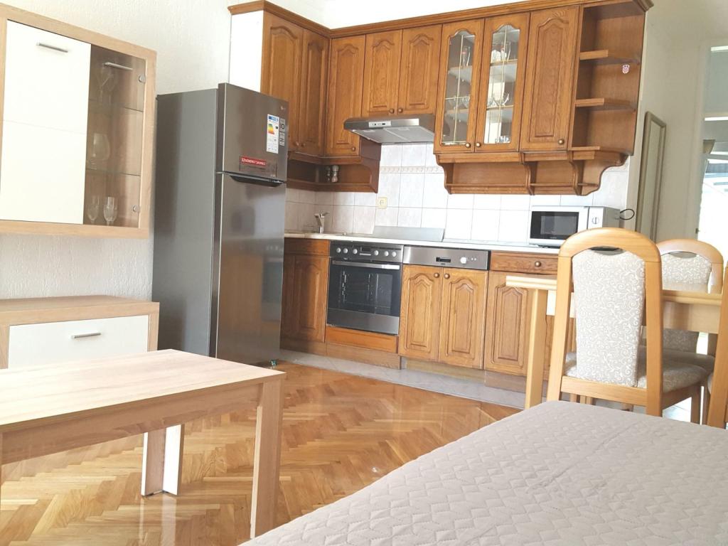 Uitstekende gastheren, aangenaam en vriendelijk, en altijd tot uw dienst. Ze begroetten ons met koffie, vers bereide vis, zelfgemaakte wijn en gebak. Alles beschreven in het aanbod van het appartement verwelkomde ons! Zeer schoon appartement op een geweldige locatie en dicht bij alle voorzieningen. Natuur en omgeving zorgen voor een echte vakantie in de mooiste stad van Kroatië