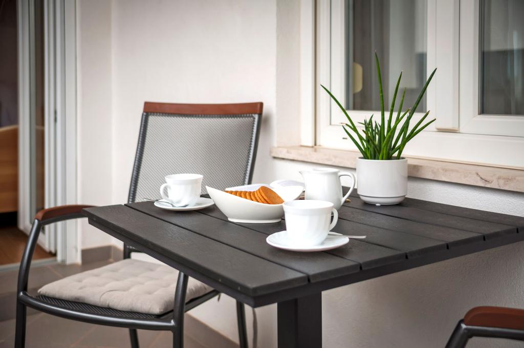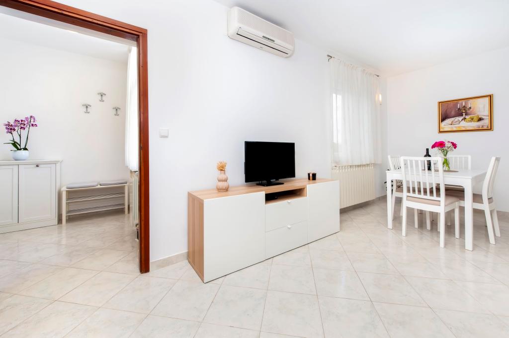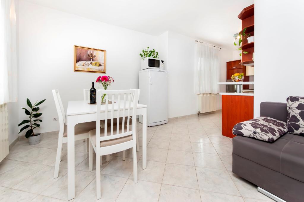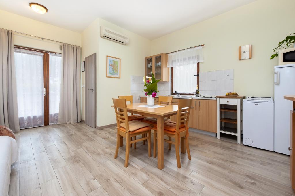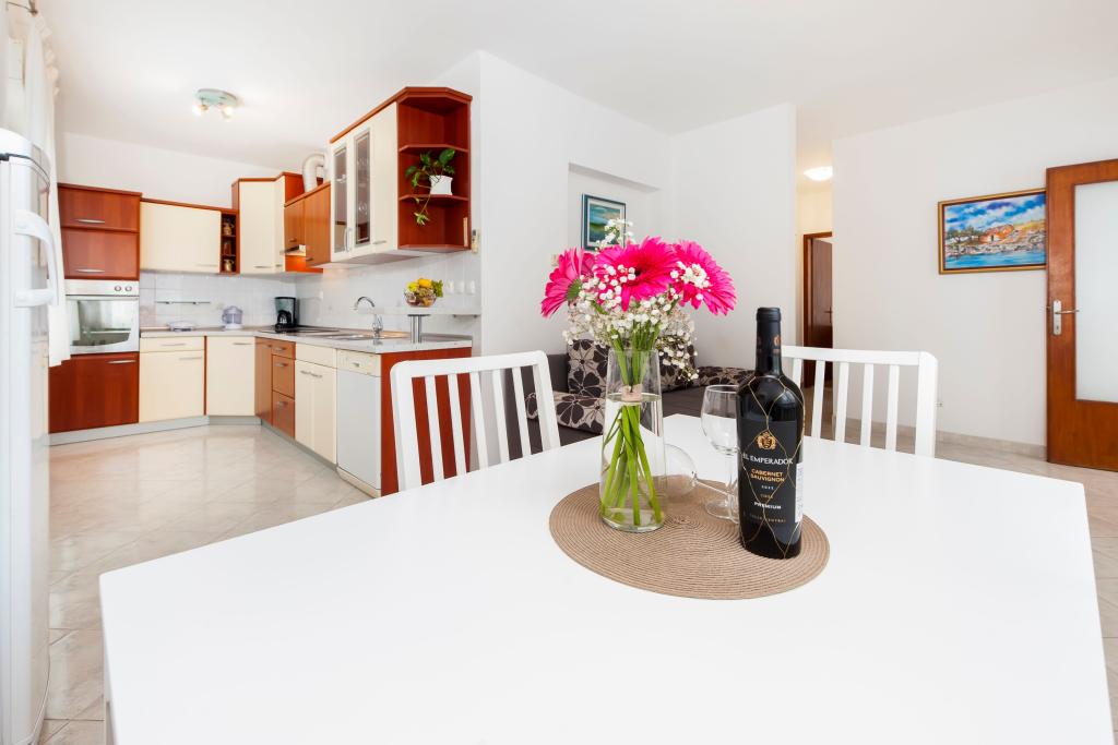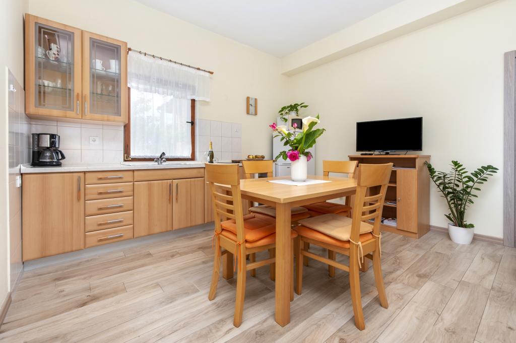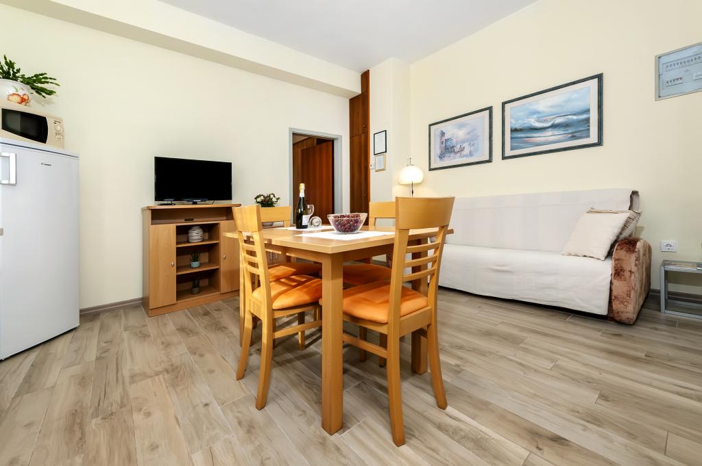 Babybedje en kinderstoel gratis op aanvraag. De appartementen zijn volledig uitgerust en voorzien van airconditioning. De prijs is inclusief bedlinnen, handdoeken voor gebruik in het appartement, gebruik van de airconditioning, wifi en één parkeerplaats per appartement op het terrein. Het verschonen van bedlinnen en handdoeken is mogelijk op aanvraag. Wasmachine in appartementen A2+1 SANDRA en A4+1 SANDRA. Vaatwasser in appartement A4+1 SANDRA.