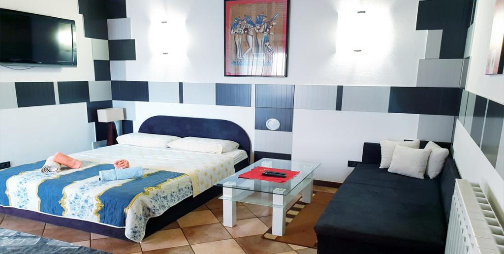 House Stošić is gelegen in een rustige omgeving (de beste toeristische wijk van de stad), 15 minuten van het stadscentrum, slechts 5 minuten of 300 meter van het strand Cuvi en 500 meter van het bospark Punta Corrente en het beroemde strand Lone Bay, dat u kunt bereiken vanaf onze gratis fietsen die we beschikbaar hebben voor gasten, met een speciale aanbieding om elektrische scooters te gebruiken als extra activiteit tijdens uw vakantie. Ook in ons huis zijn huisdieren altijd welkom. Alle appartementen zijn circa 60 tot 100 vierkante meter groot en beschikken over een mooi groot terras of balkon, met prachtig uitzicht op de tuin of achtertuin. Appartementen met: LCD-TV aan de muur, kluis in elk appartement, gratis fietsen, wasmachine, videobewaking op eigen parkeerplaats, gratis draadloos internet, houtgrill, gasgrill, kinderspeelplaats in de tuin voor de allerkleinsten.