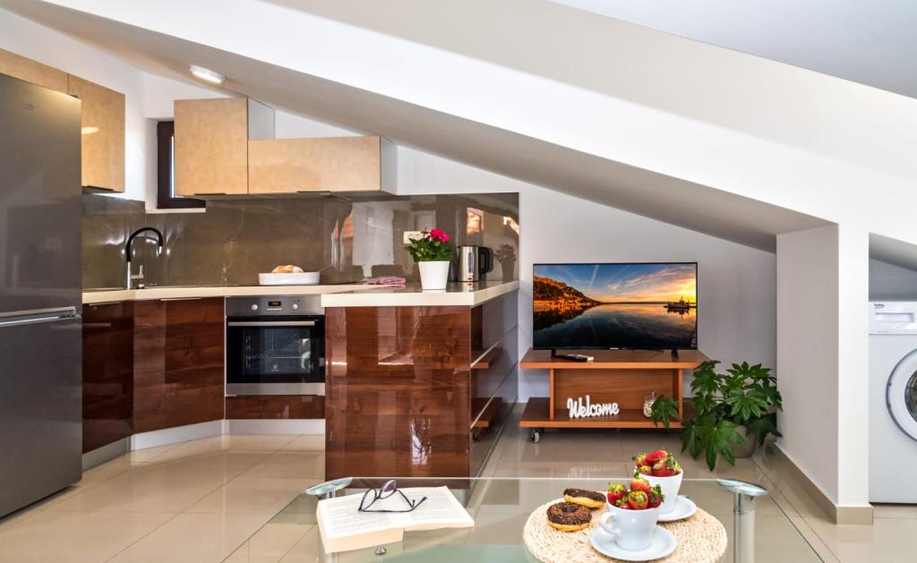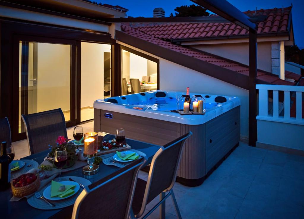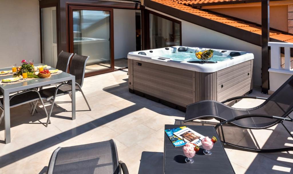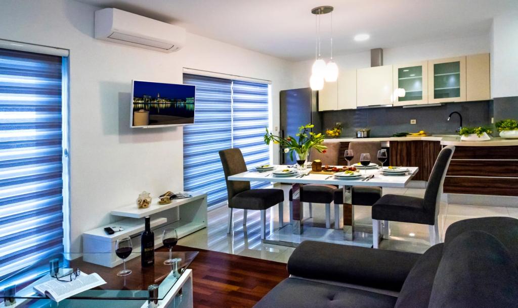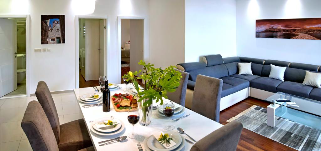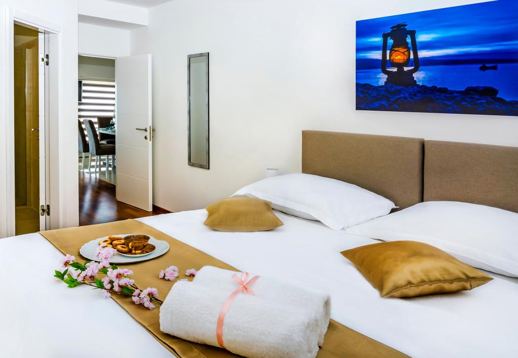 De faciliteit "Adria Croatica" beschikt over 4 luxueus ingerichte appartementen met 4 sterren, uitzicht op zee en gratis parkeergelegenheid. Het ligt op 100 meter van de zee en het strand is te bereiken via een metro naast het gebouw. De appartementen zijn volledig en modern uitgerust met kwaliteitsmeubilair. Ze zijn ideaal voor een langer verblijf, terwijl de hydromassagebaden het ontspannend maken. De units hebben 2 slaapkamers, 2 badkamers, keuken, woonkamer, eetkamer, terras of balkon. Ze zijn uitgerust met geluiddichte kamers, airconditioning, gratis internet, satellietzenders,...