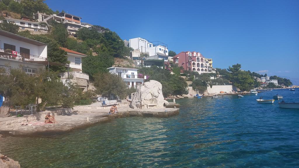 Appartement zeer goed uitgerust, ruime, comfortabele bedden, airconditioning, terras met uitzicht op de zee, schoon zwembad. Alles zoals beschreven. Auto onder het dak met de ingang rechtstreeks naar het appartement. De eigenaar is behulpzaam, aardig, en de hele familie, geweldig! Hij adviseerde over goede pubs, mooie stranden en de beste plekken om te winkelen. Rotsachtig strand in juli bijna leeg, schoon, mooi. Je moet eerst de heuvel af en dan ongeveer 6 minuten de trap nemen om van het zeebad te genieten. Klein dorp, geen drukte. Dicht bij vele prachtige plaatsen Omis, Mirabela Fortress, Fortica via ferrata, Biokovskie Oko, Skywalk Biokovo, Sveti Jure, Cetina canyon, Makarska, Split.
