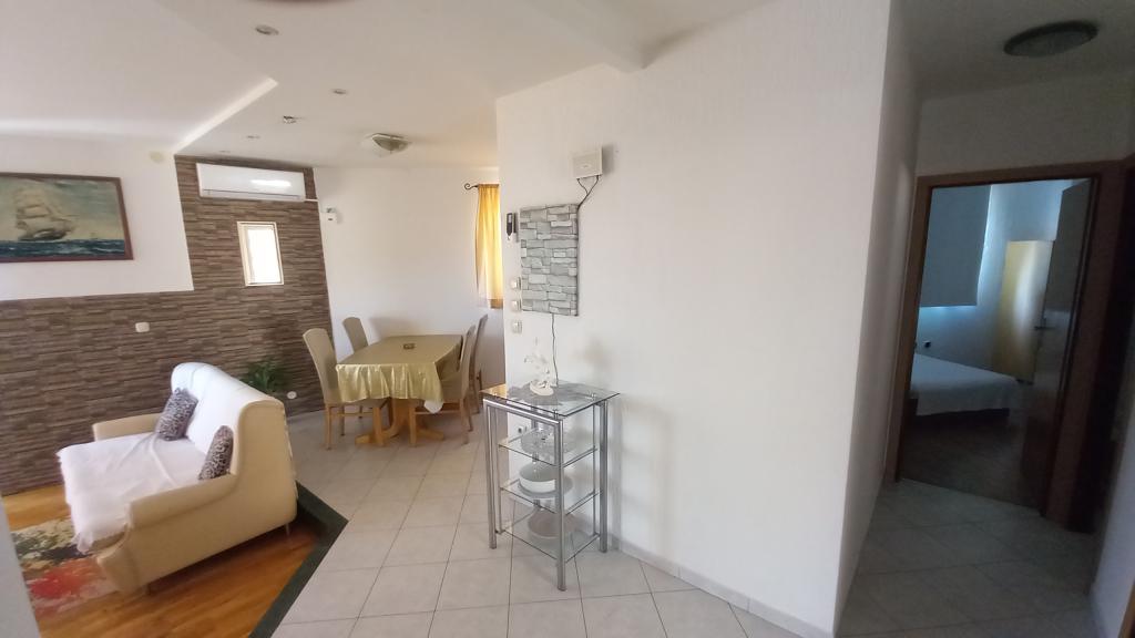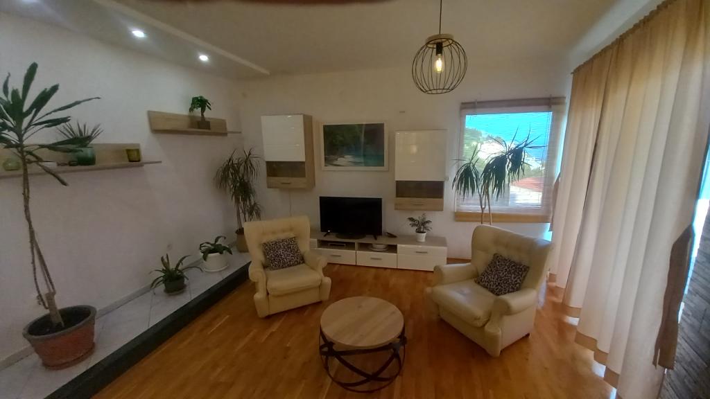 Appartement aanbevolen, alles zoals beschreven (vaatwasser, oven, grote koelkast, bidet). Prachtig uitzicht op zee vanaf het balkon en de keuken. In een slaapkamer is er een extra balkon met uitzicht op de zee, en in het andere venster met uitzicht op de prachtige bergen. Op het terrein is een zwembad met een prachtig uitzicht op de zee en de bergen. Het nabijgelegen strand (beneden) is zeer intiem, was er niet veel mensen - een klein strand kiezels en vele plaatsen steenachtige / beton en wat belangrijk is schaduwrijke. Zeer mooie gastheer (Ivo begroeten u en uw gezin) - behulpzaam en beleefd. Op een dag bracht hij ons warme koekjes met het vullen.