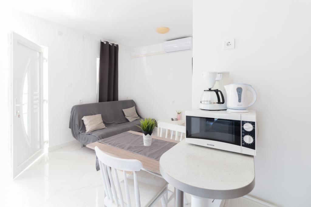 Casa Tea ligt in het hart van het pittoreske Privlaka, meer bepaald in het kleine stadje Sabunike, dat bekend staat om zijn heldere zee en talrijke ondiepe baaien, waardoor gezinnen met kleine kinderen deze vakantieplek graag kiezen. Een bijzondere attractie is een lang zandstrand met een bron van geneeskrachtige modder. Het gemeubileerde appartement biedt zijn gasten alles wat ze nodig hebben voor een ontspannen en actieve vakantie, en alles wat ze nodig hebben is in de directe omgeving: een markt, een bakkerij, een fruitwinkel, restaurants en cafés. Als gasten willen windsurfen, kunnen ze een bezoek brengen aan de zeilschool in het mooie Nin, op slechts een paar minuten rijden van het appartement, en in tien minuten met de auto bent u in Zadar voor een avondwandeling. Het gehele appartement is voorzien van airconditioning en heeft een uitstekend wifi-netwerk en bestaat uit twee slaapkamers, een woonkamer met een slaapbank voor twee personen, een open eetkamer, een badkamer en een volledig uitgeruste keuken. Het is geschikt voor maximaal zes personen en gasten hoeven zich geen zorgen te maken over parkeren. De favoriete plek van de gasten is het terras, waar een grote tafel met stoelen, ligstoelen en comfortabel tuinmeubilair staat voor ochtendbijeenkomsten met koffie of om uit te rusten met een boek. Ze hebben ook een barbecue tot hun beschikking: een perfecte gelegenheid voor gezellig samenzijn in de frisse lucht. Het is mogelijk om een excursie te regelen naar een van de aantrekkelijke nabijgelegen plaatsen of een boottocht op de kristalheldere zee. Casa Tea bevat alles wat de gasten een unieke vakantie-ervaring zal bezorgen.