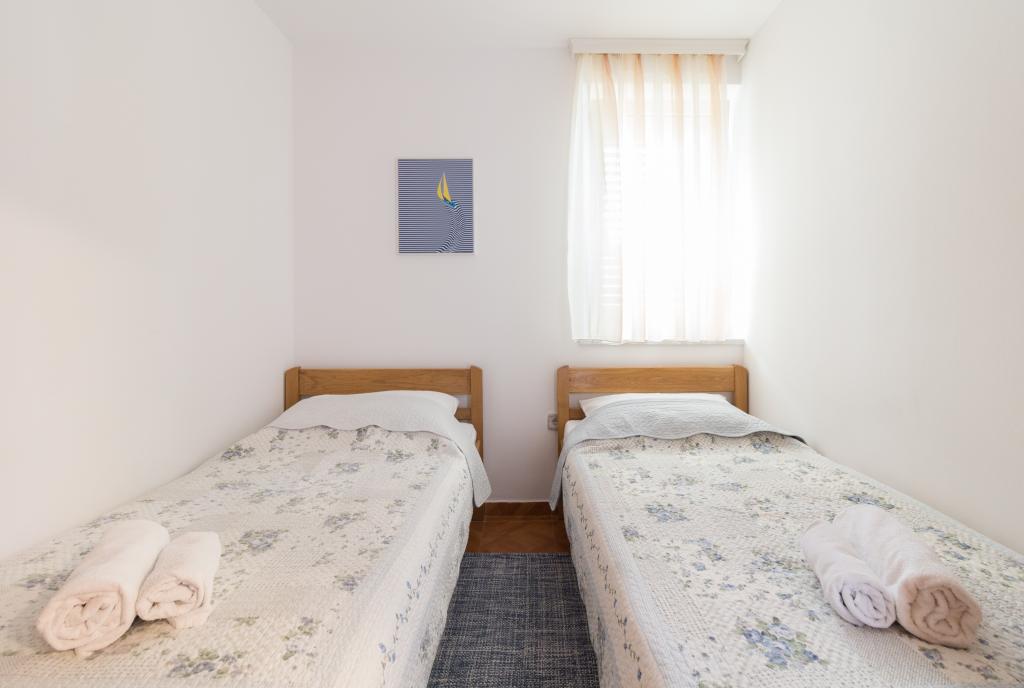 De appartementen zijn gelegen in een klein toeristisch dorpje Sabunike. In ons aanbod bieden wij 4 2-slaapkamer appartementen aan gelegen op de 1e en 2e verdieping, elk met een terras waar u de hele dag en vooral 's avonds kunt genieten. Schoon beddengoed en handdoeken zijn aanwezig in de appartementen. Beveiligd parkeren in hun eigen tuin, en zijn uitgerust met airconditioning, draadloos internet. In de buurt van het appartement zijn er stranden (zand,). Sabunike is een rustige plek die vooral geschikt is voor een rustige familievakantie. Vlakbij (3 km) ligt de oude historische stad Nin met voorzieningen die handig zijn om te zien (archeologische vindplaatsen, museum, restaurants, souvenirwinkels). Als u uw vakantie in een rustige en ontspannen omgeving van Sabunik wilt doorbrengen, neem dan contact met ons op en boek uw afspraak.