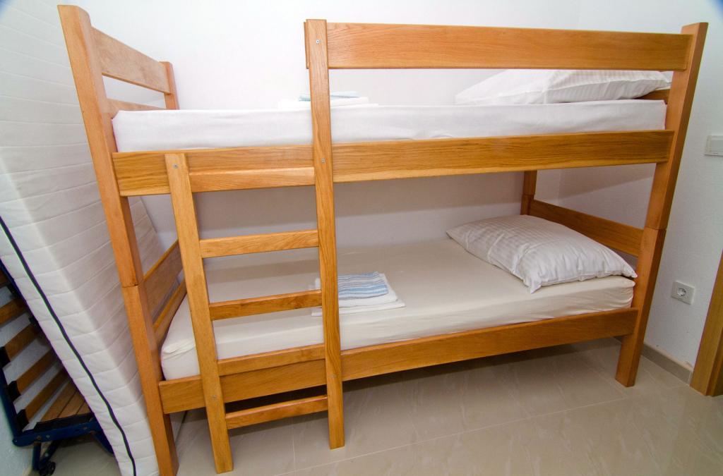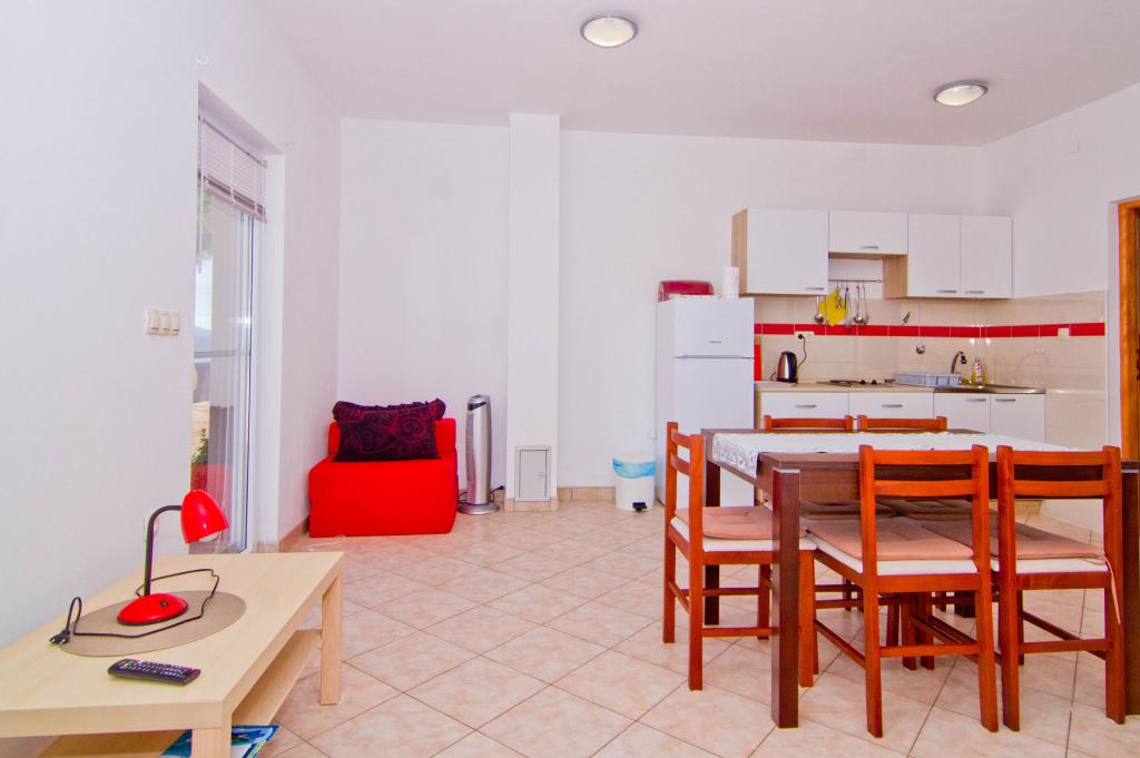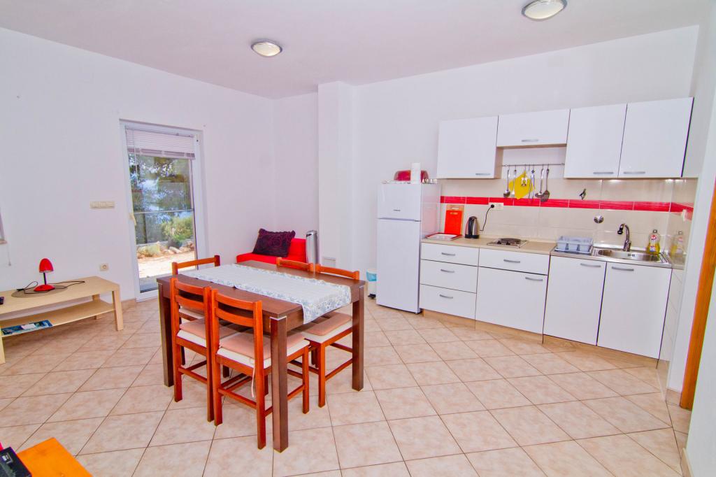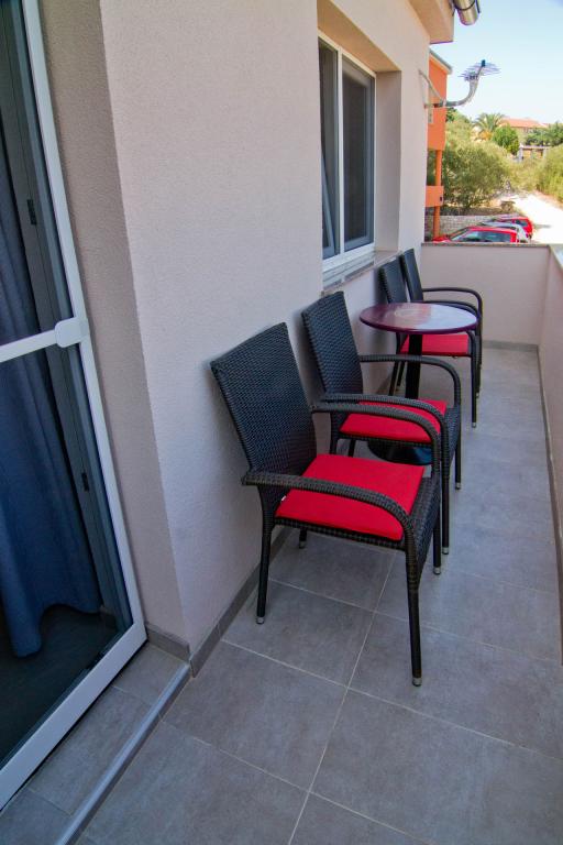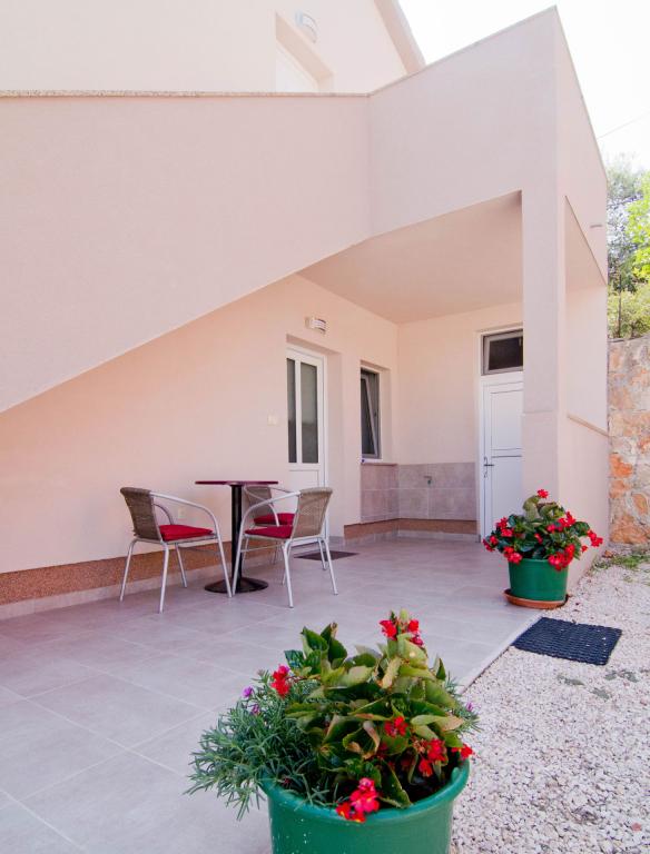 Appartementen gelegen in een nieuw gebouw in een rustige straat met een prachtig uitzicht op de zee, de eilanden en Velebit. Elk appartement heeft een aparte ingang. De appartementen zijn van alle gemakken voorzien voor een fijne zomervakantie en beschikken over één parkeerplaats op het erf. Ze zijn uitgerust met een televisie en een draadloos netwerk (Wi-Fi). Beddengoed en handdoeken zijn bij de huurprijs inbegrepen. Gegarandeerd gebruik van de barbecue in de tuin. Appartement 4, voorzien van airconditioning, 45 m2, gelegen op de eerste verdieping, heeft een slaapkamer met tweepersoonsbed en een kinderslaapkamer met elk twee bedden. Het balkon is 6 m2 en het terras 9 m2. De keuken die aansluit op de eetkamer is voorzien van basis keukenapparatuur, kook- en serveergerei. Appartement 2+2, voorzien van airconditioning, oppervlakte 45 m2, bevindt zich op de begane grond en heeft een tweepersoonsslaapkamer en de mogelijkheid voor een tweepersoonsbed in de woonkamer. Terras van 9 m2. De keuken die aansluit op de eetkamer is voorzien van basis keukenapparatuur, kook- en serveergerei. Huisdieren zijn niet toegestaan