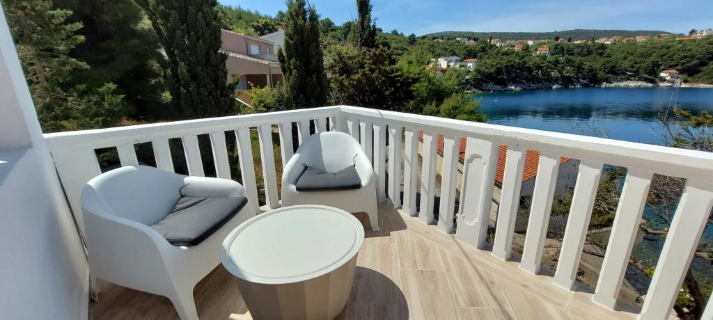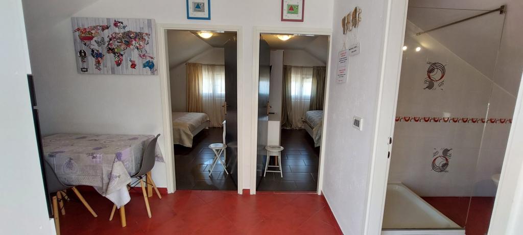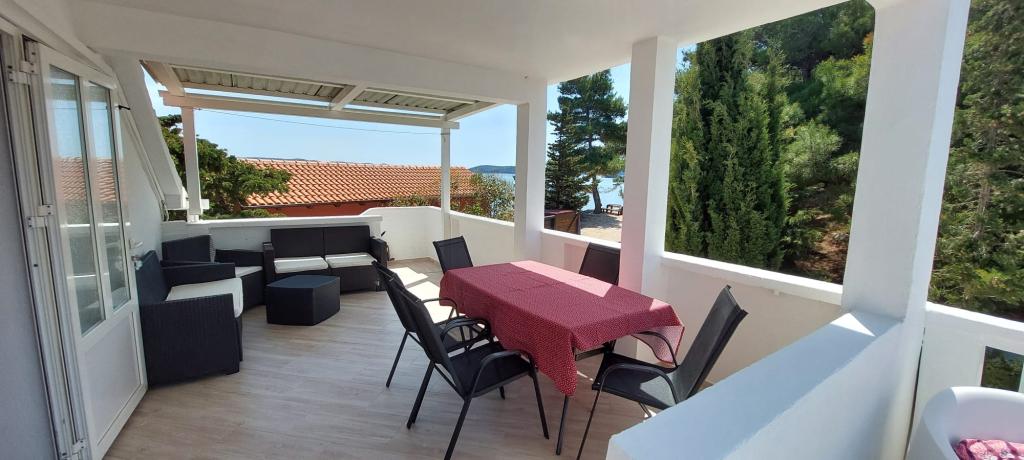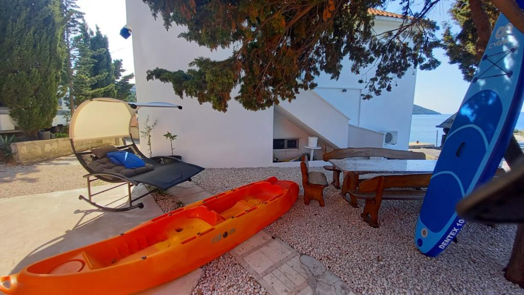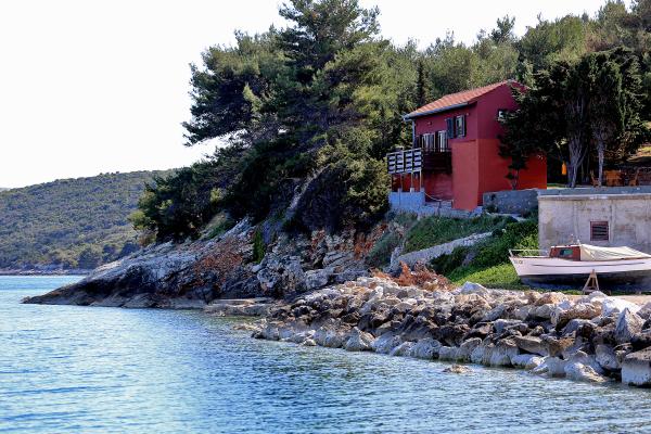 Appartementen Kolić in Savar op Dugi otok bevinden zich in de directe omgeving van de zee. Savar is een ideale plek voor een ontspannen vakantie met familie of vrienden. Wij bieden accommodatie in totaal 3 appartementen met een terras en een prachtig uitzicht op de zee. In een apart rood huis bevindt zich een studio-appartement voor 2 personen, uitgerust voor een aangenaam verblijf. De andere 2 appartementen bevinden zich in het witte huis ernaast. Eén op de eerste verdieping en de andere op zolder. beide appartementen hebben twee slaapkamers, een keuken met eetkamer en een badkamer. Elk appartement in het witte huis biedt comfortabel plaats aan 4 tot 5 personen, en indien nodig kunnen we ook 6 personen huisvesten. Het bijzondere aan onze appartementen is dat ze direct aan zee liggen en het strand direct voor het huis! De tuin beslaat ruim 1000 m2 en is omgeven door pijnbomen, die ons een dikke schaduw geven. Op warme zomerdagen rusten onze gasten uit in een hangmat tussen twee dennenbomen, maar ze kunnen ook genieten op de ligstoelen aan zee of in de schaduw van de dennenbomen.