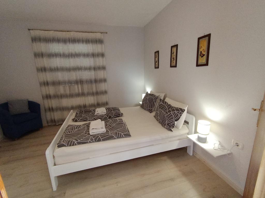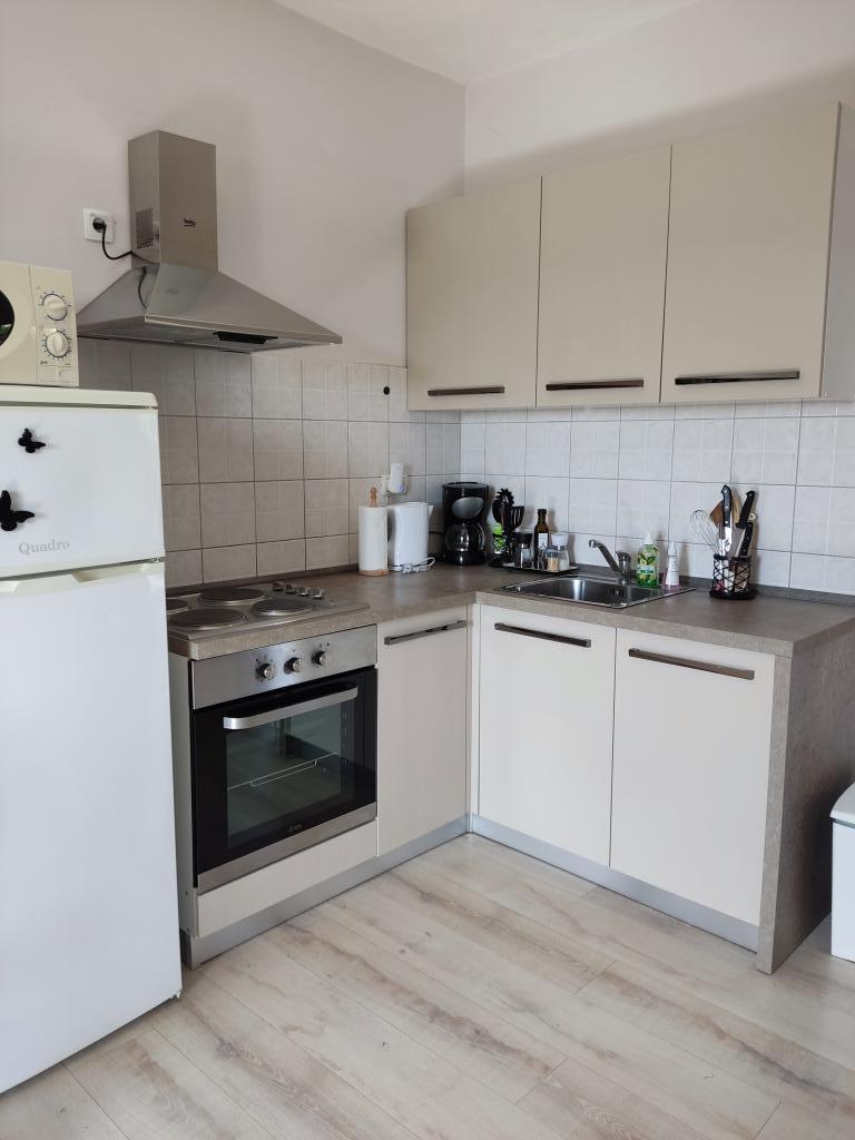 Het appartement is gelegen in een landelijke omgeving. Op loopafstand vindt u verse groenten en fruit, honing, zelfgebakken eieren, enz. Het dichtstbijzijnde strand ligt op 700 meter afstand. Er is een slaapkamer met een tweepersoonsbed en een slaapbank met matrastopper voor 2 personen. Daarnaast zijn er twee terrassen met uitzicht op de natuur en de olijfgaard. Gasten kunnen ook genieten van de schaduw onder de met wijnranken begroeide pergola. We hebben het appartement van alle gemakken voorzien voor een aangename vakantie: handdoeken, beddengoed, kookgerei, kruiden, extra vierge olijfolie, azijn, koffiezetmachine, mokapot, waterkoker, broodrooster, magnetron, oven, vaatwasser, wasmachine, föhn, strijkijzer, airconditioning, toiletpapier en een beveiligde parkeerplaats. Er is een aparte ingang. Roken is toegestaan op de terrassen. Huisdieren zijn welkom. Wij zijn een rustig gezinnetje dat u tijdens uw vakantie niet zal storen. U kunt een mand met seizoensgroenten en -fruit verwachten en verse kruiden uit de tuin. Voor meer informatie en wensen staan we graag tot uw beschikking. Aarzel niet om contact met ons op te nemen.