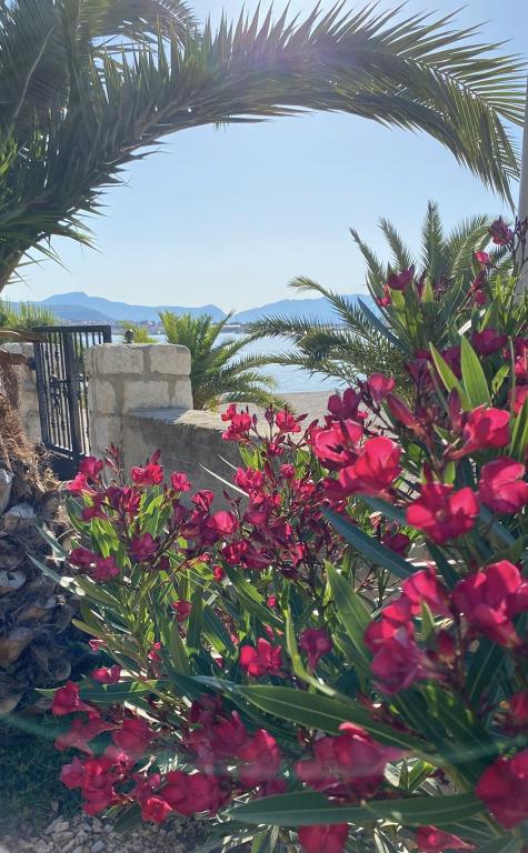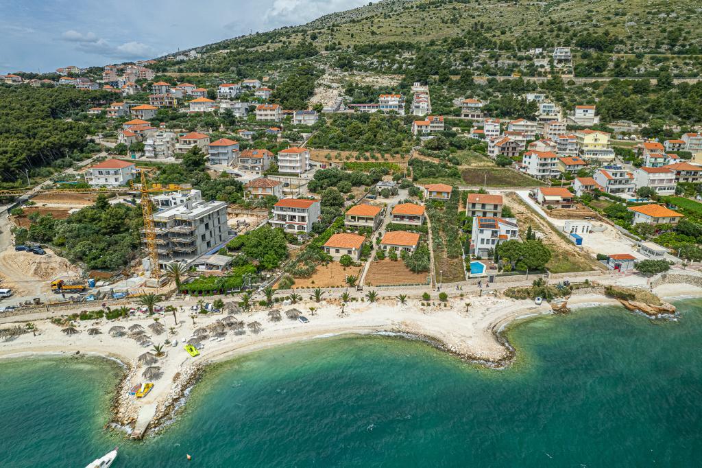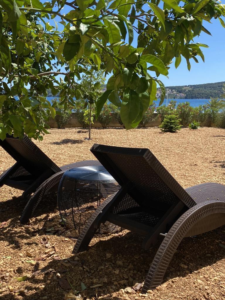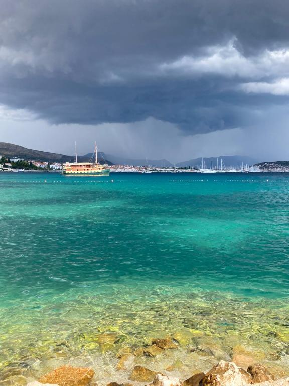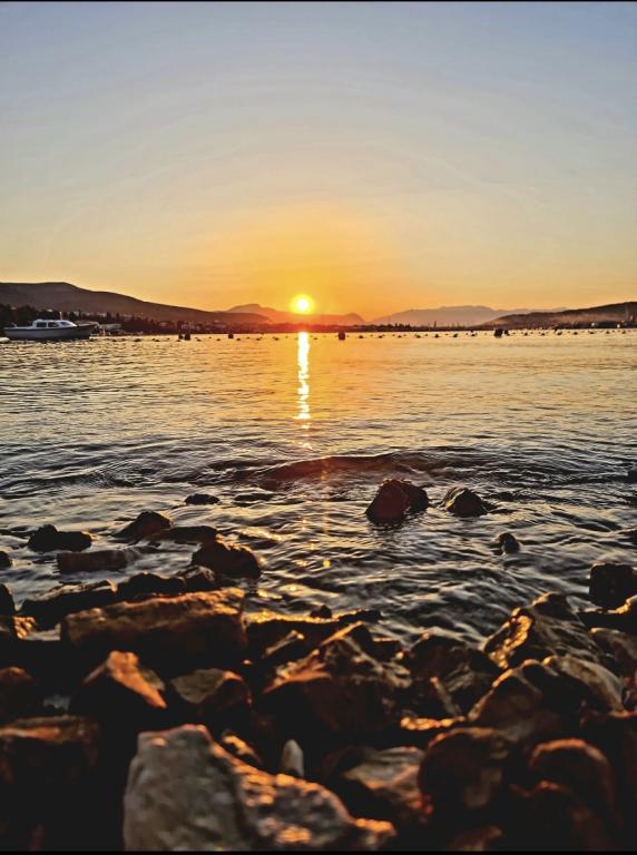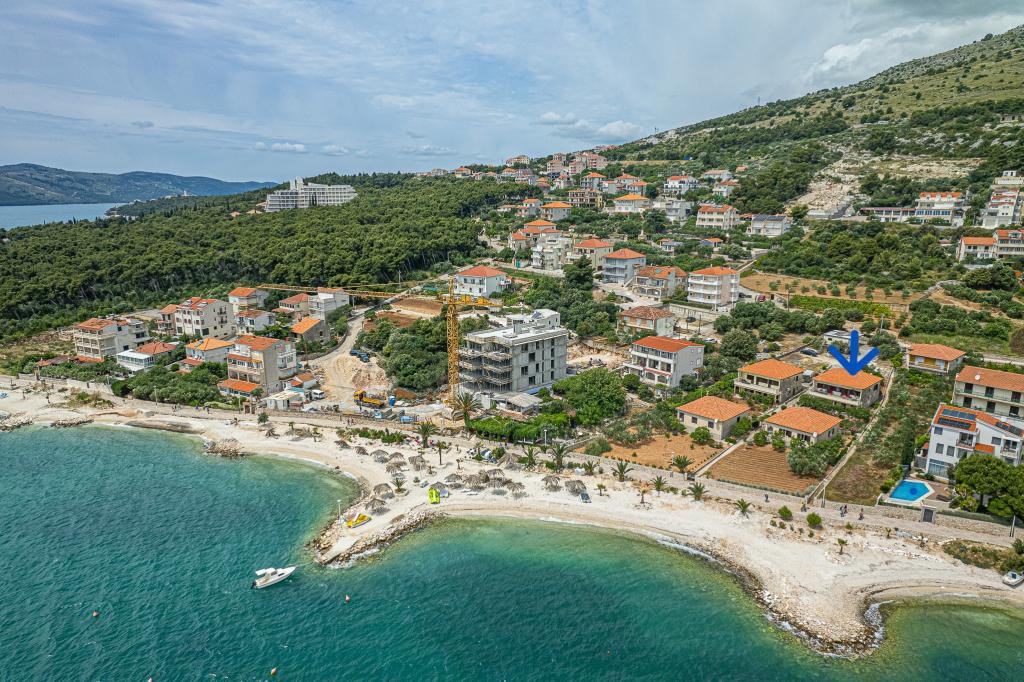 Volledig uitgerust appartement in een rustige omgeving. Gelegen op de eerste rij aan zee, 10 m van het strand. Het appartement ligt op 20 minuten lopen van het centrum en op 40 minuten lopen van de stad Trogir. Er is een restaurant en een koffiebar in de buurt.