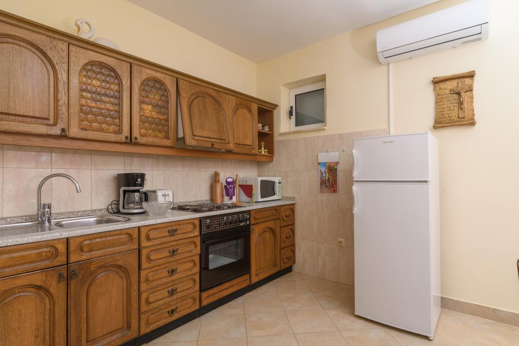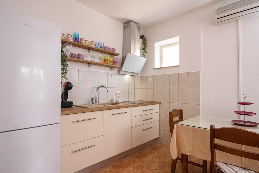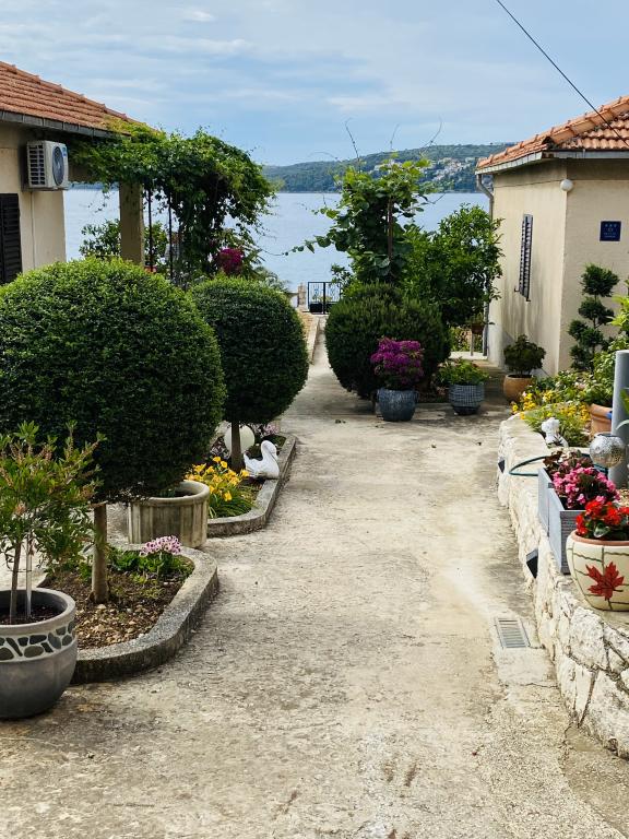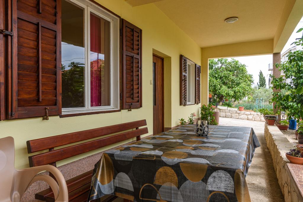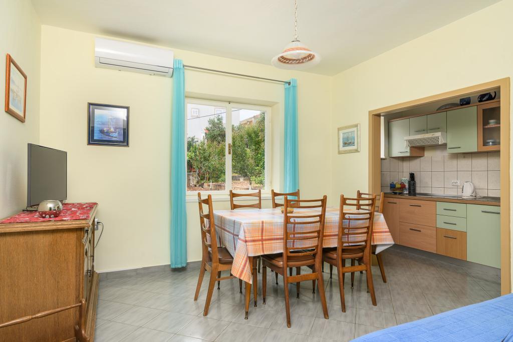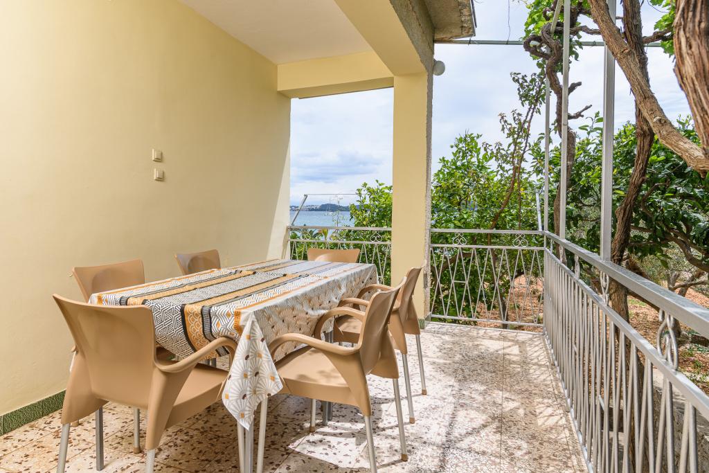 Volledig uitgerust appartement in een rustige omgeving. Gelegen op de eerste rij aan zee, 10 m van het strand. Het appartement ligt op 20 minuten lopen van het centrum en op 40 minuten lopen van de stad Trogir. Er is een restaurant en een koffiebar in de buurt.