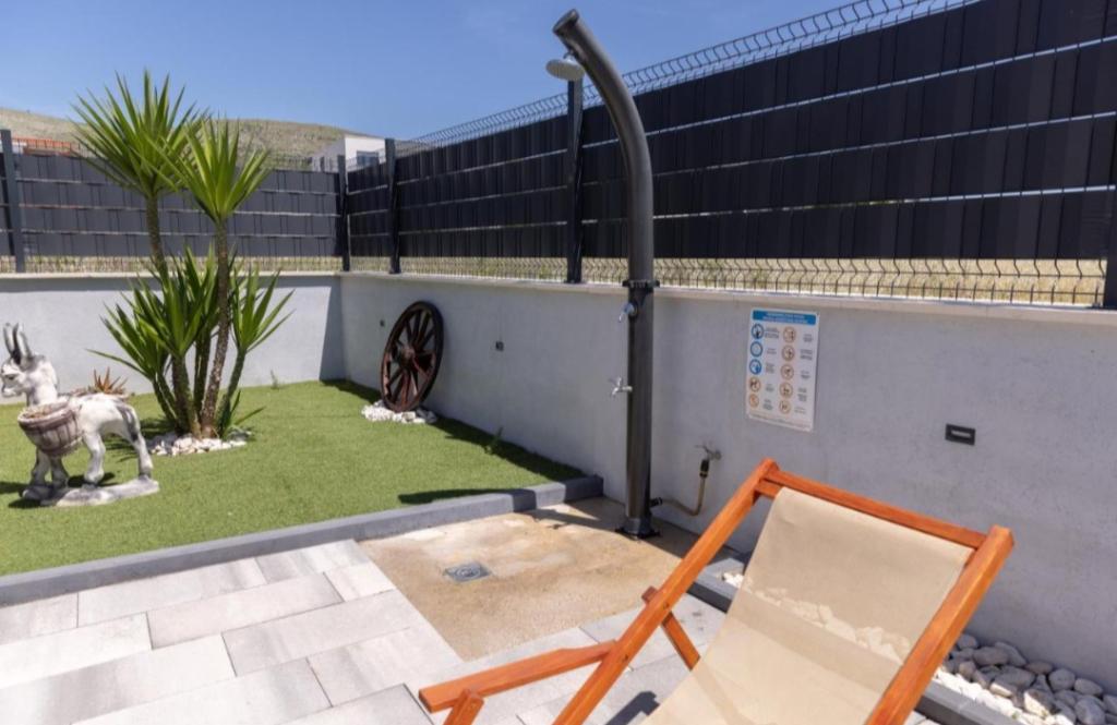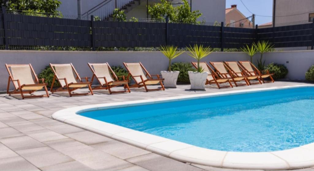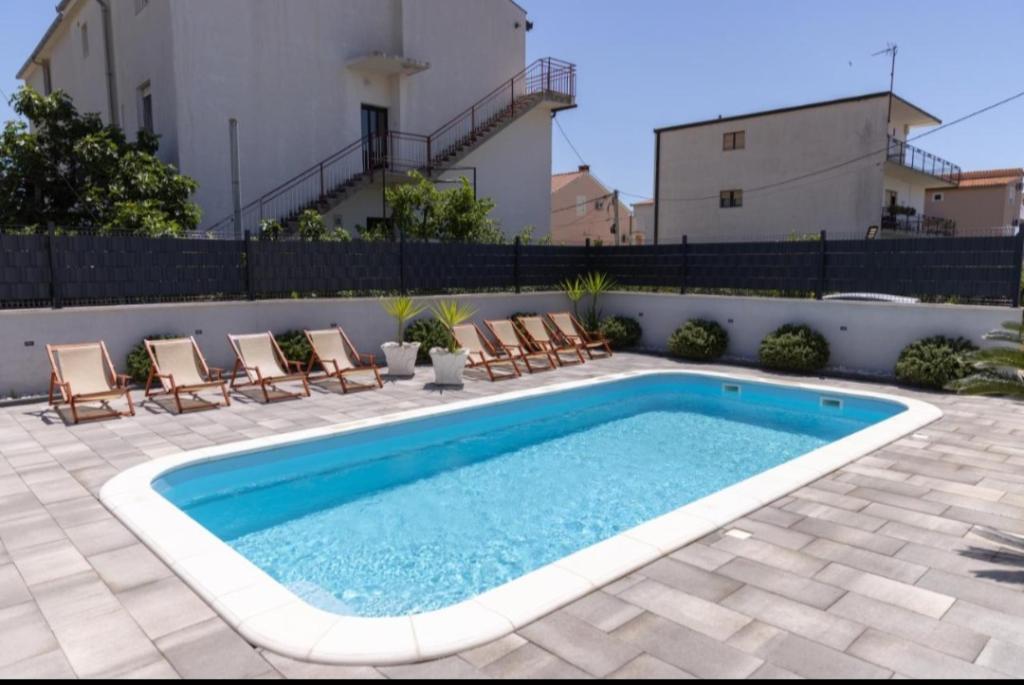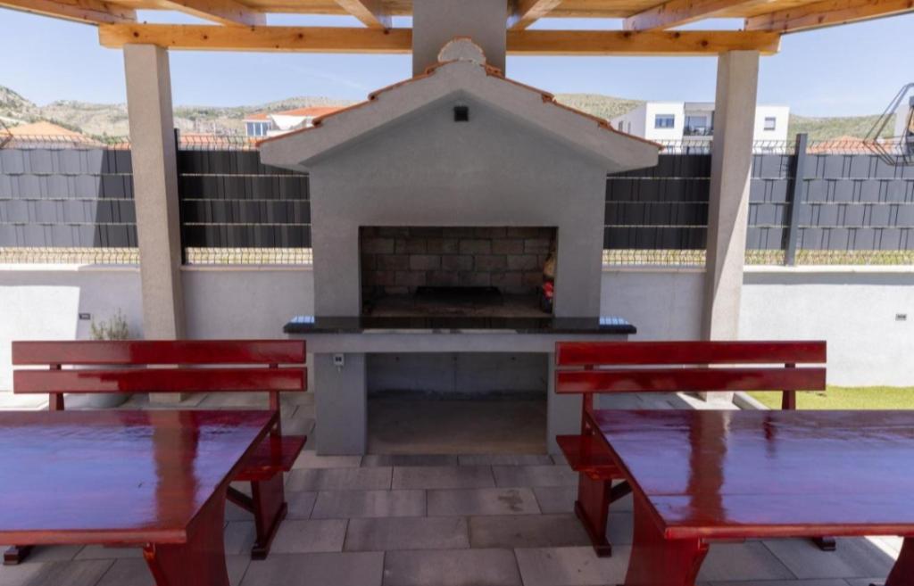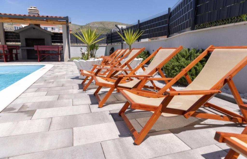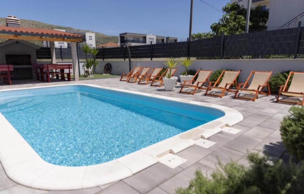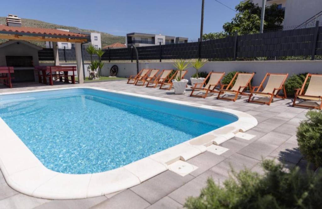 Nieuw ingerichte villa in Seget Donji. Bevat 2 appartementen van elk 65 m2. Elk appartement heeft een badkamer en twee slaapkamers met tweepersoonsbedden. Elk appartement heeft een ruime woonkamer. De villa heeft een tuin van 168 vierkante meter, een zwembad van 30 vierkante meter, een buitengrill, ligstoelen om uit te rusten, vuurpolodoelen voor het zwembad. Beide appartementen hebben uitzicht op het zwembad en de zee. Marina Baotić ligt op 100 meter afstand. De winkel Tommy ligt op 50 meter afstand, waarbinnen zich een winkel bevindt die vers brood, gebak en vers vlees verkoopt. Restaurant Barba ligt op 50 meter afstand, evenals Caffe Bar en Apotheek. De villa ligt op de grens van Trogir en Seget Donjeg.