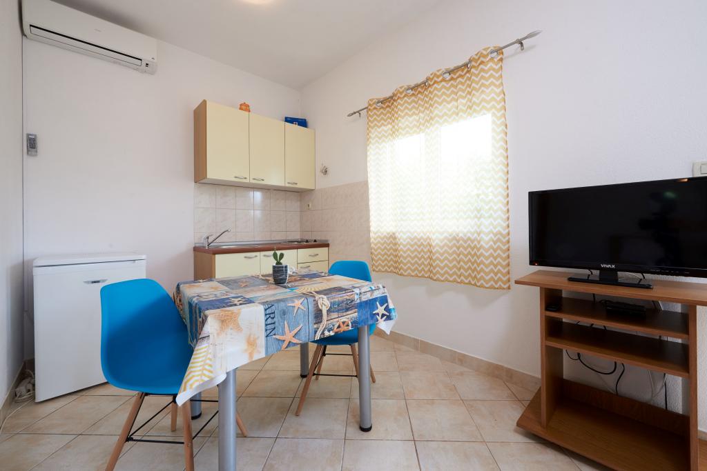 Volledig ingerichte appartementen in het centrum van een klein Dalmatisch dorp, Seget Vranjice, op slechts 30 meter van het strand en op slechts 5 km van Trogir (door UNESCO beschermde stad) zijn een ideale keuze voor gezinnen met kinderen. Studio-appartementen bevinden zich op de begane grond, A8 en A4 (a) bevinden zich op de eerste verdieping en A4 (b) bevindt zich op de tweede verdieping. Op slechts 5 minuten lopen zijn er winkels en diverse restaurants waar u kunt genieten van de beste Dalmatische specialiteiten. Sportfaciliteiten voor verschillende activiteiten zijn ook vlakbij, op slechts 10 minuten lopen. Als u Trogir, Split of een van de nabijgelegen eilanden wilt bezoeken, ligt de bootstop op slechts een paar minuten afstand. Voor het huis is een tuin waar kinderen veilig kunnen spelen. Op de binnenplaats achter het huis staat een barbecue tot uw beschikking. Parkeren is ook voorzien voor alle gasten van het appartement.
