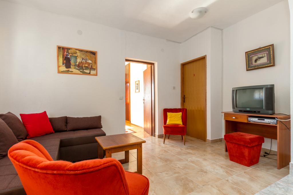 Het huis heeft 2 verdiepingen, omgeven door groen en tuin, grote tuin, rustige omgeving, fluitende vogels, op het zuiden, zonnige kant. Afstand 50 m. Van de zee, een paar minuten lopen naar het centrum, vlakbij de camping die een gratis zwembad voor gebruik, enz.