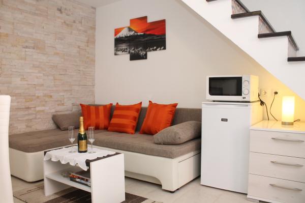 We verbleven in het appartement in juli. Praat perfect met mevrouw Ines. We schreven sms, beschreven ons de weg en verwelkomden ons vriendelijk. Appartement precies zoals beschreven, hoewel klein maar mooi en schoon !! Slaapkamer boven waar twee volwassenen slapen en beneden in de woonkamer met een slaapbank in de keuken waar twee personen comfortabel slapen. Het appartement ligt in een rustige straat, maar slechts een paar meter van het centrum en de haven. Het mooie zandstrand dat geschikt is voor kleine kinderen ligt iets verder dan vermeld, op ongeveer 10 minuten loopafstand. (Helaas, in het seizoen head to head en daarom lenen we liever ligstoelen om onze ruimte te hebben. 2 ligstoelen en parasol ongeveer 350 CZK) Langs de kust veel restaurants en mooie wandelingen in de avond ..
