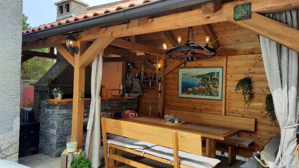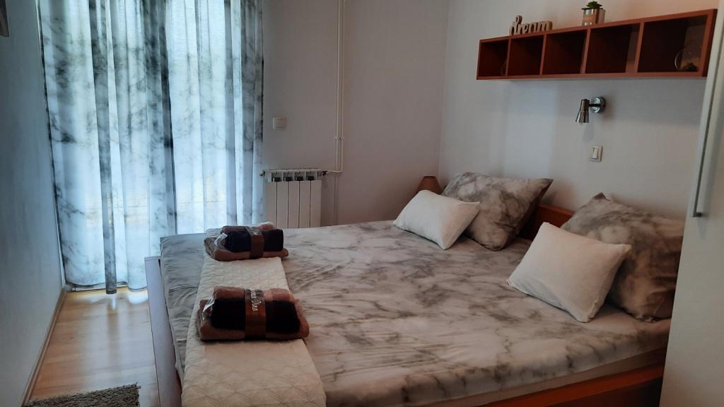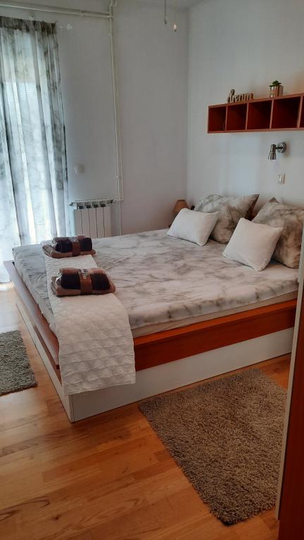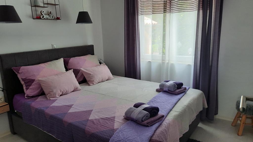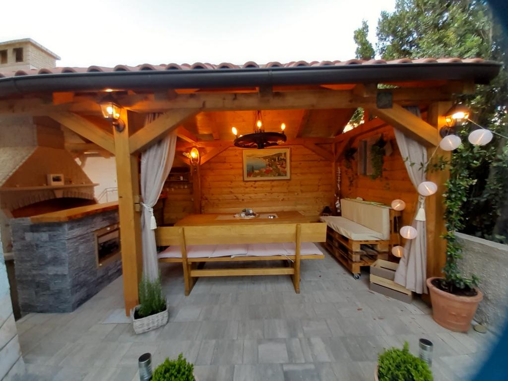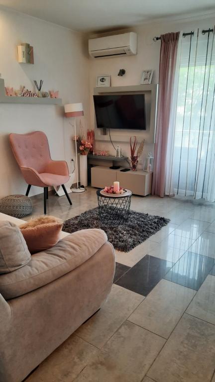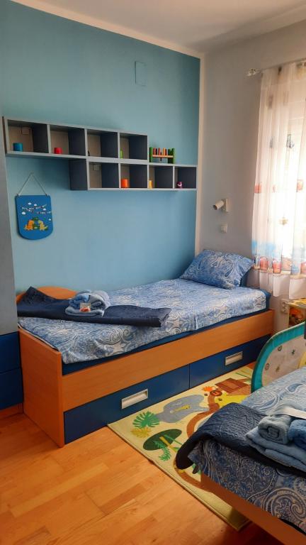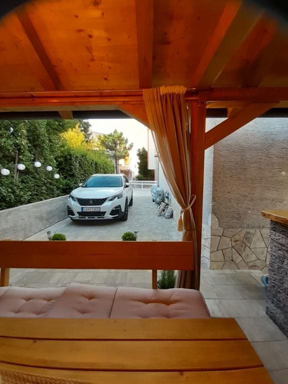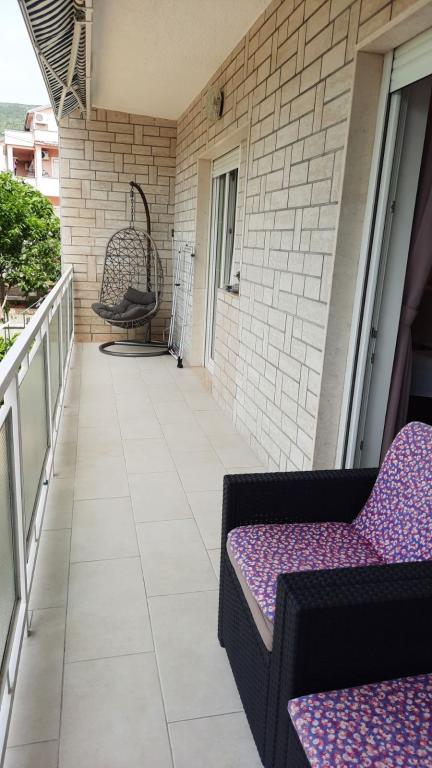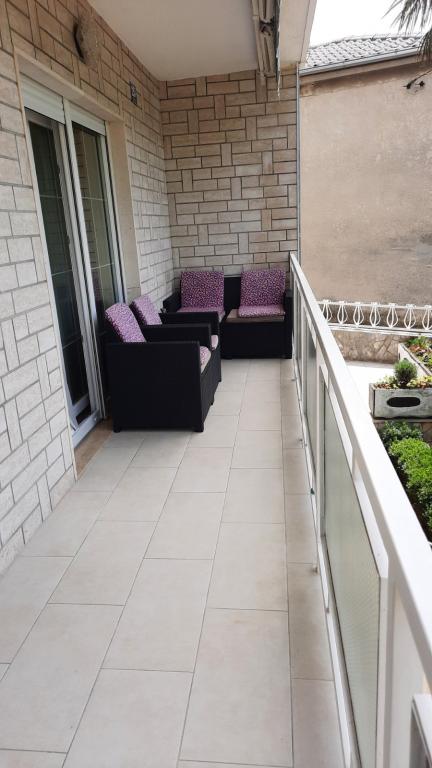 Appartement Branka ligt op slechts 10 minuten van het centrum en op 5 minuten van het strand. Het is gelegen in een rustig deel van de stad, omgeven door groen en een grote tuin waar kinderen het meest van genieten door het gevarieerde aanbod aan kinderspeeltoestellen zoals trampoline, glijbaan. Het is voorzien van airconditioning. Het heeft 2 kamers, keuken die is verbonden met de woonkamer, badkamer, grote tuin en terras met uitzicht op de zee.