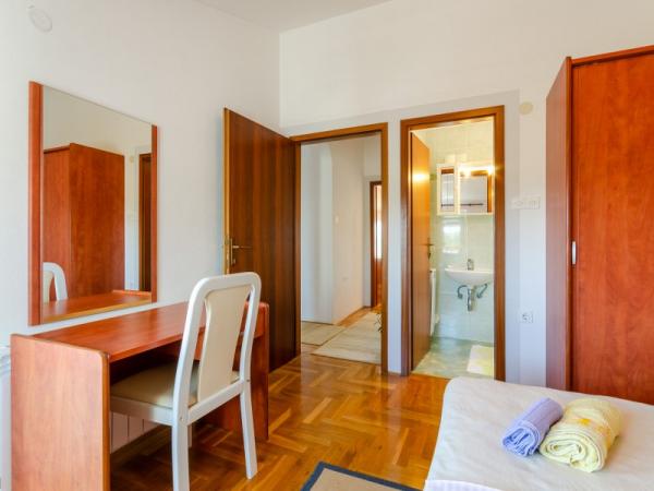 Appartement schoon, goed onderhouden. Het strand is heel dichtbij, we gingen twee keer per dag met kleine kinderen en we waren binnen 5 minuten op het strand door vrij te wandelen. Onderweg vanaf het strand kunt u terecht voor een ijsje op de nabijgelegen boulevard. Iets verderop ligt Konzum met een gevarieerd aanbod. Mevrouw Svetka is erg aardig, prettig en je kunt ook in het Tsjechisch met haar communiceren. Uitzicht vanuit de slaapkamerramen, en douches ze waren adembenemend. We raden deze accommodatie ten zeerste aan en hopen hier nog eens terug te keren